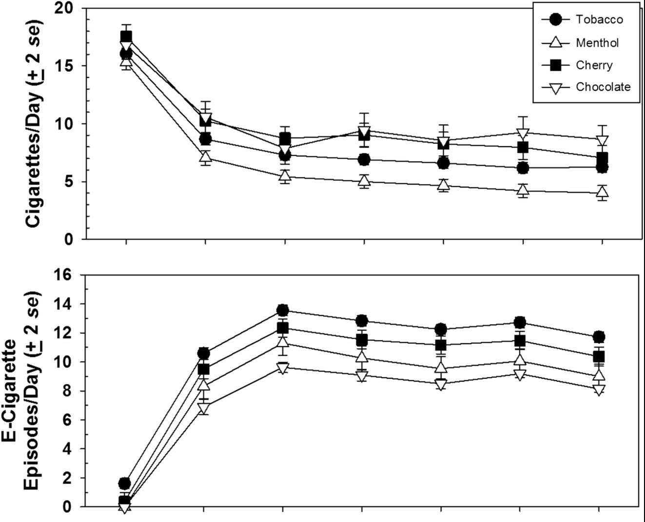 Анализ результатов показал, что в течение 6 недель среднее количество выкуриваемых сигарет среди участников эксперимента снизилось с 16 до 7 штук в день. Положительный эффект, как оказалось, очень сильно зависел от используемого вкуса жидкости. Так, наилучшие показатели отказа оказались у тех, кто выбрал ментол, а меньше всего курильщикам помогли вкусы вишни и табака. Мало того, больше всего использовали ЭСДН те, кто выбрал табак и вишню в качестве своих вкусов, а меньше всего парили испытуемые с шоколадными жидкостями.