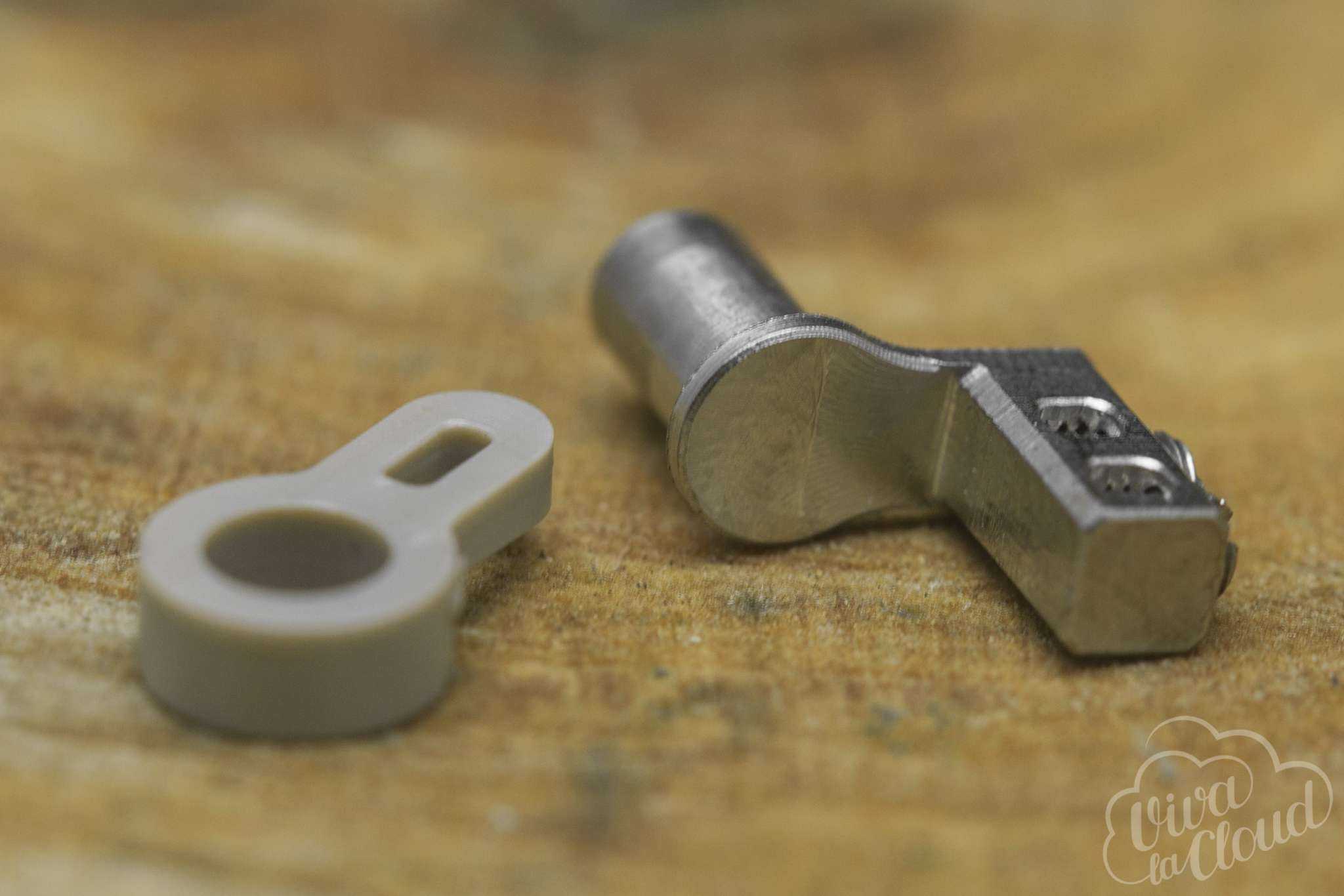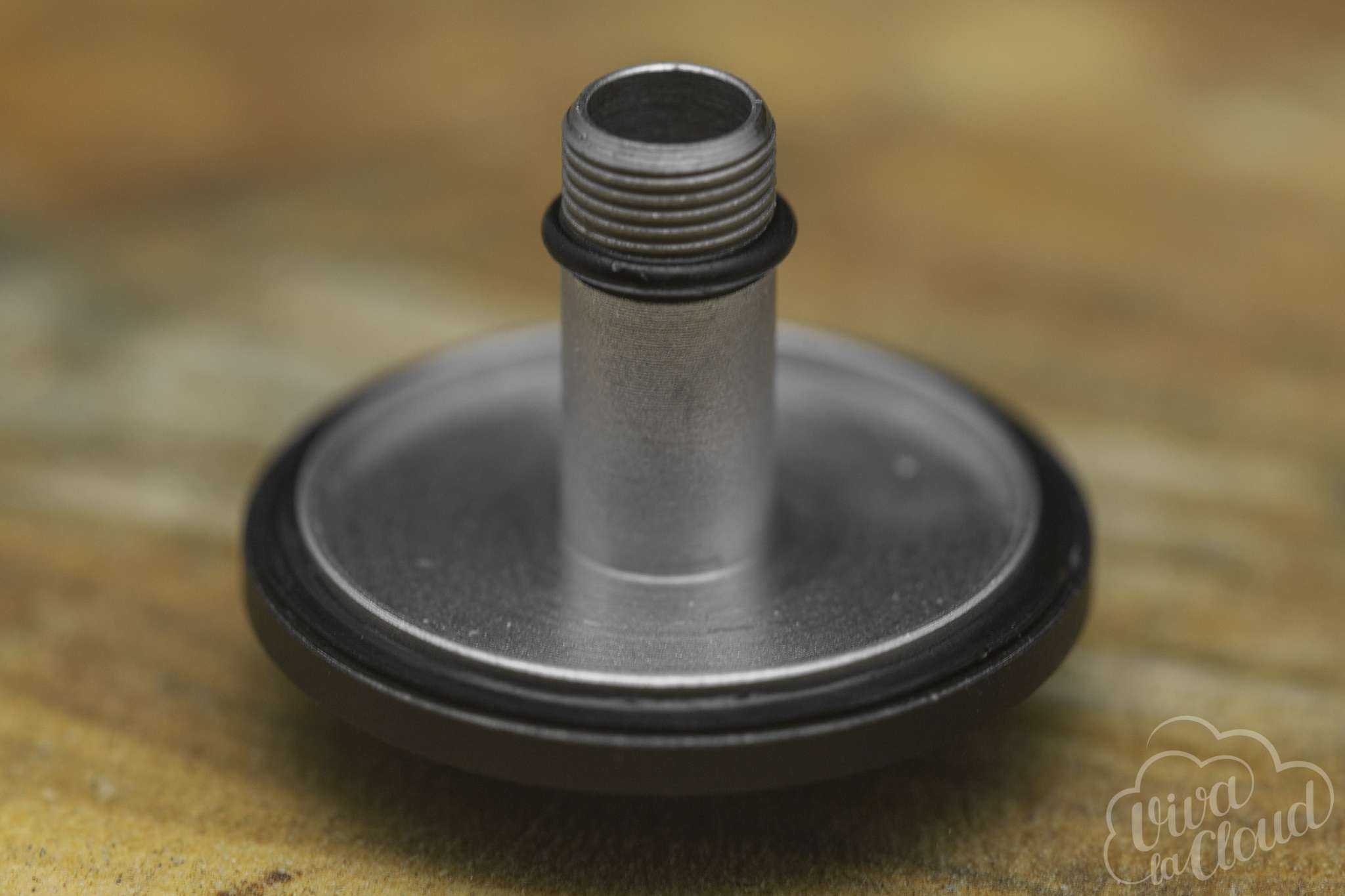 Сверху находится нестандартный дрип-топ. Держится он на резьбе и поставить любой другой сюда не получится.