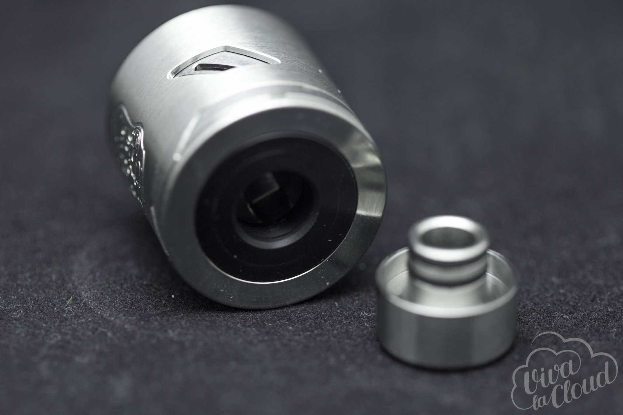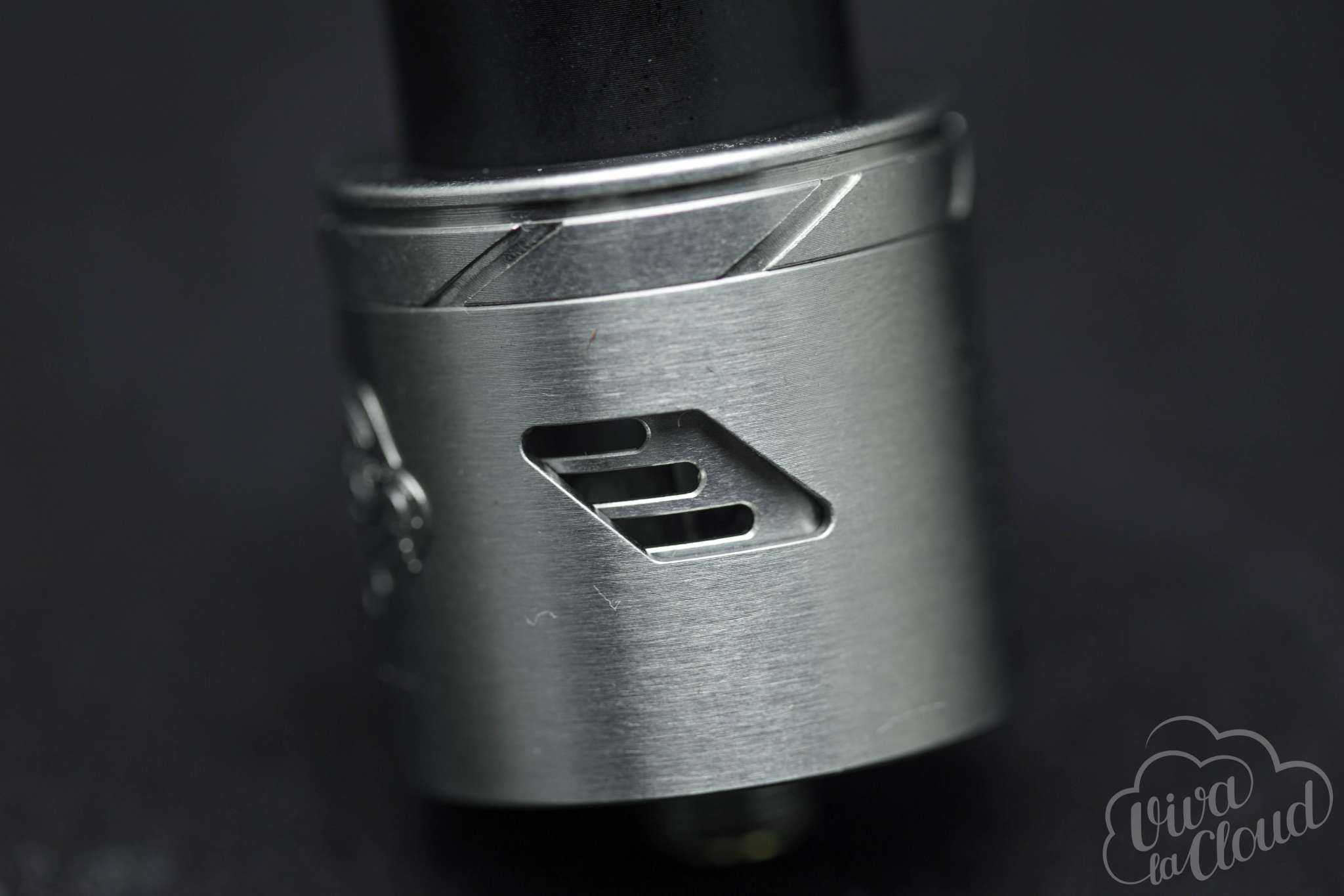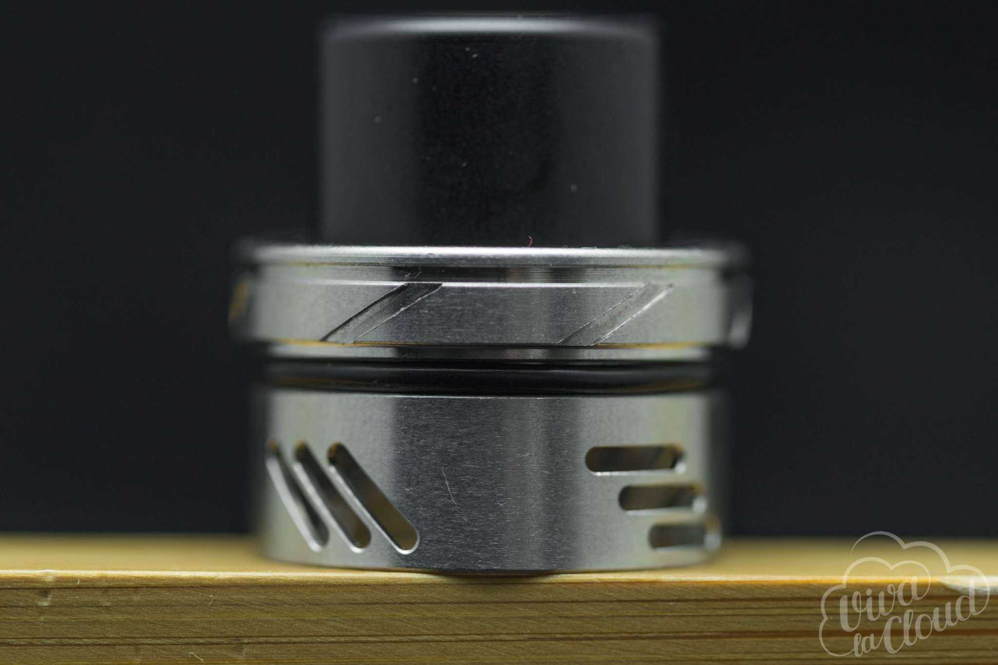 В любом случае, Troll V2 большой. И обдув у него соответствующий. Он регулируемый и представляет из себя две конфигурации отверстий подачи воздуха: горизонтальную или же диагональную. К несчастью для любителей сингл-койлов, возможности обдувать одну спираль в Troll v2 нет. Регулировка обдува осуществляется путём поворота топ-кэпа с удобными для этой операции насечками.