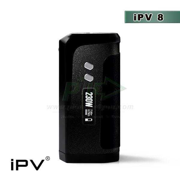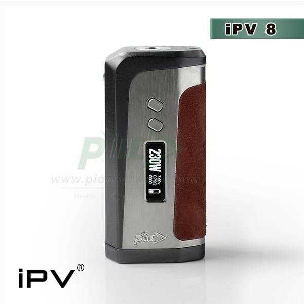 При первом взгляде на IPV8 вспоминается одно из популярных устройств из того же класса — Sigelei Fuchai 213. Похожи они характерным расположением органов управления на корпусе и в некоторой мере схожими форм-факторами. Эргономичности у IPV8 все-таки больше благодаря более обтекаемым формам и торцевой стороне, отделанной кожей. Мод относительно легкий — сухой вес составляет всего 200 г, ведь сделан он из цинко-алюминиевого сплава. Предусмотрено три расцветки: Matte Black, Volcan Red и Matte Brown.