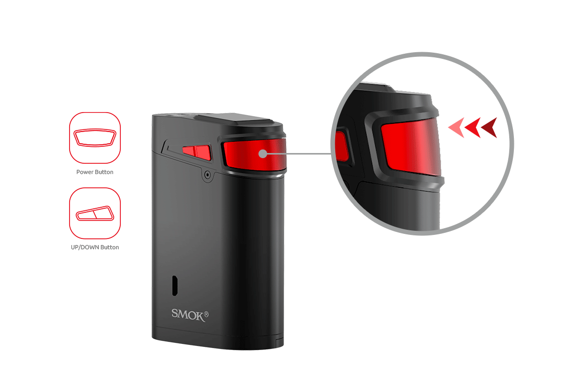 Кнопка-эспандер, однако, прошла длительный путь эволюции от того же «Куба». Если в H-Priv ее площадь сократилась до небольшого треугольника, то у SMOK G320 Kit она стала совсем небольшой и скошенной.