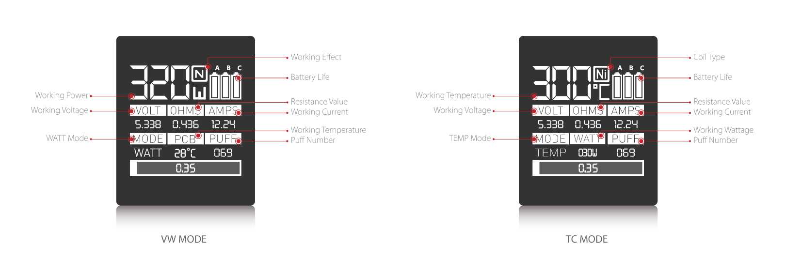 В его информативности сомневаться не приходится: SMOK смогли туда впихнуть максимум важных (и не очень) индикаторов, включая раздельное отображение заряда каждой батареи и общее количество затяжек.