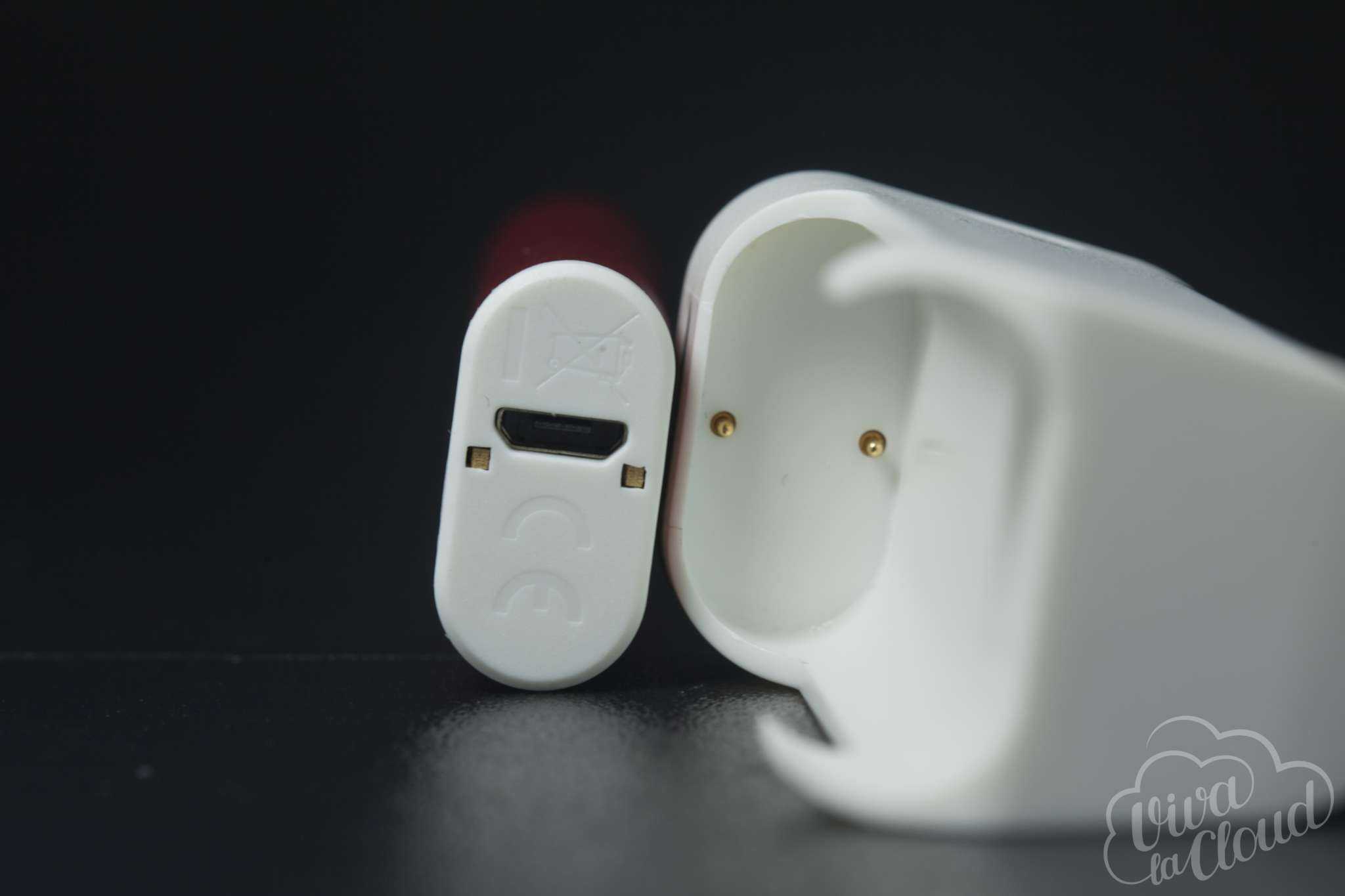 iCare Mini кардинально отличается от своего «старшего брата» емкостью аккумулятора (320 мАч против 650), размерами (он тоньше на 2 мм и на 5.5 мм у́же), объемом бака (1.3 мл против 1.8) и, пожалуй, самой главной фишкой — наличием док-станции. Она представляет из себя небольшую «кроватку», способную зарядить ваш девайс аж семь полных раз: в вашем кармане всегда будут дополнительные 2300 миллиамперчасов.