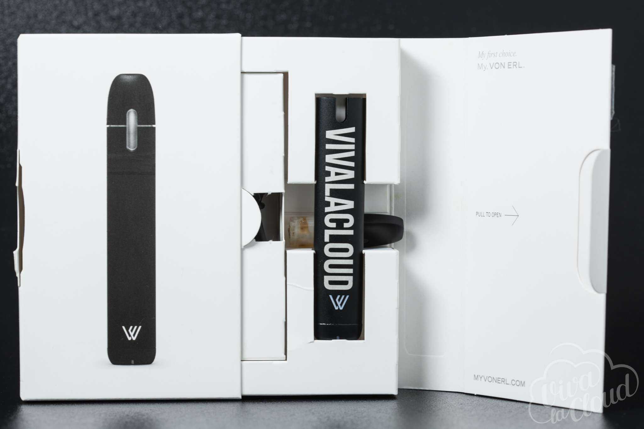 Von Erl MY — отличное устройство для человека, который решил отказаться от сигарет. Он очень маленький; внутрь кладется картридж с никотином крепостью 18 или 24 мг/мл, заряжается по Micro USB. Все сделано так, чтобы человеку совершенно не нужно было заморачиваться с этим устройством. Он просто его покупает и использует.