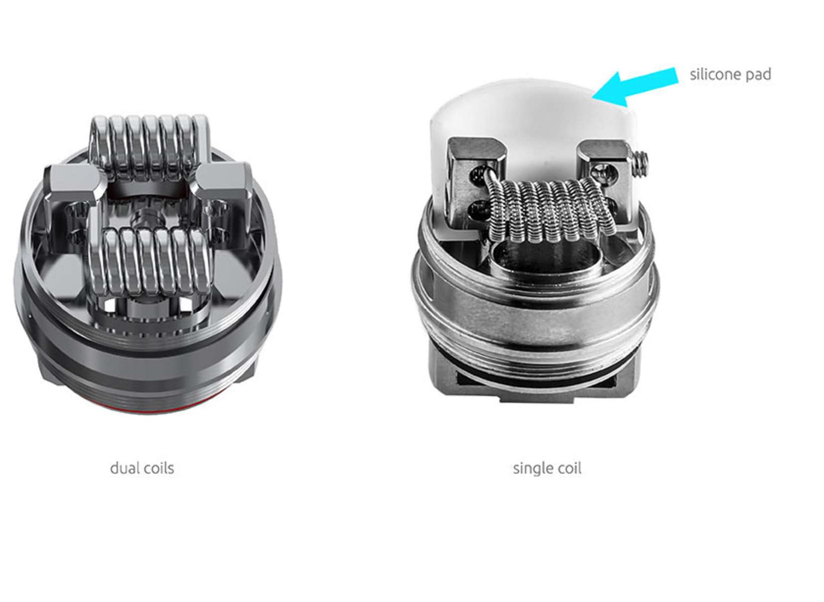 Производитель не забыл и про койлбилдеров: для них предусмотрено два вида «обслужек»: на 2 и на 3 спирали. Стороной нельзя обойти последнюю — бесстоечную, где спирали фиксируются сбоку болтами, что дает простор для творчества любителей обслуживать свой атомайзер самостоятельно.