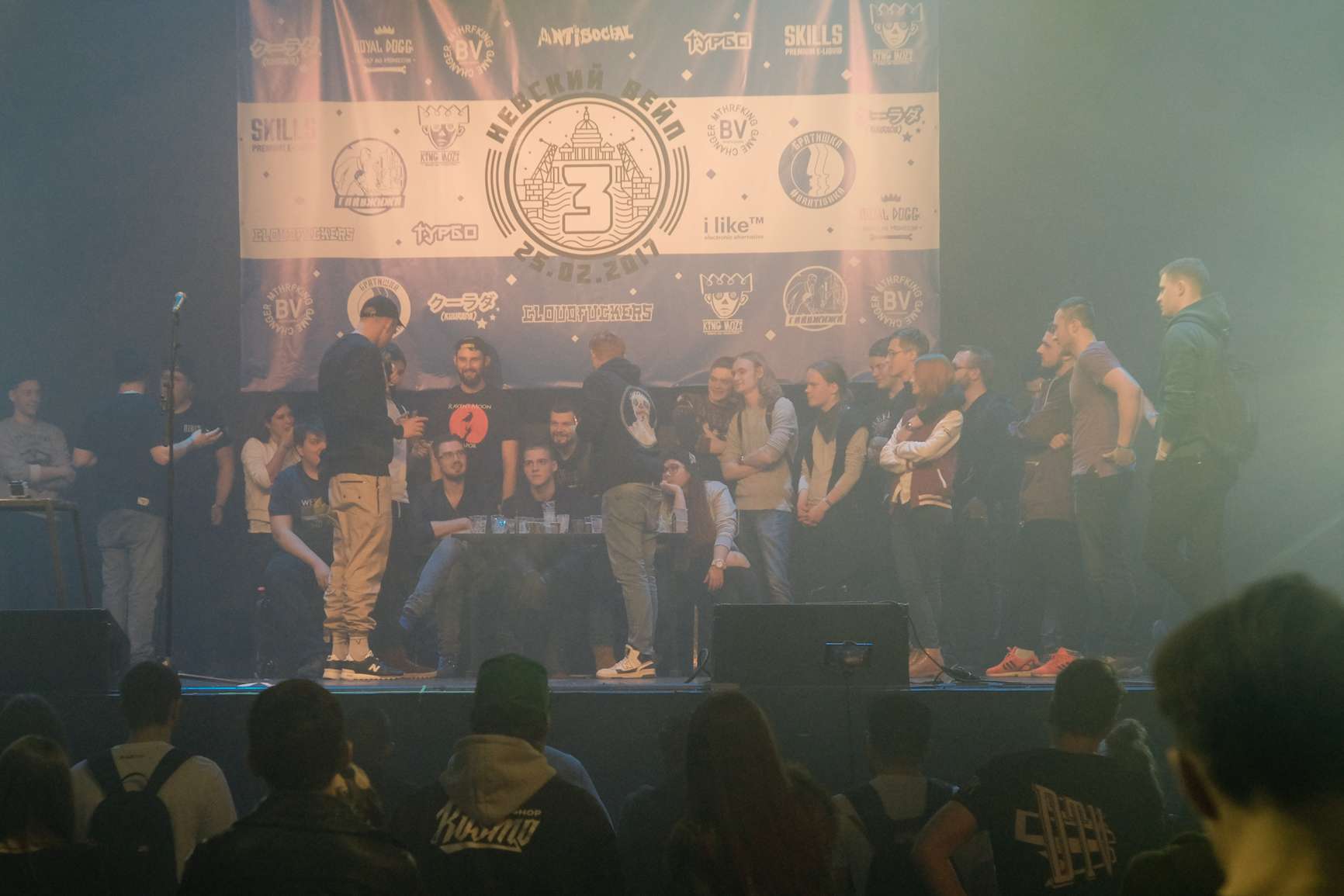 Третий «Невский вейп» занял петербургский клуб A2. Участников разместили в двух залах — «Мире» и «Спутнике» — «большом» и «малом» соответственно. Свободной осталась VIP-зона: туда пускали исключительно по «организаторским» бейджам. Именно оттуда, с затененного балкона, за Ресторатором наблюдал совладелец сети вейп-шопов «Бабилон» — под их опекой организовывался «Невский вейп» — Игорь Самборский.