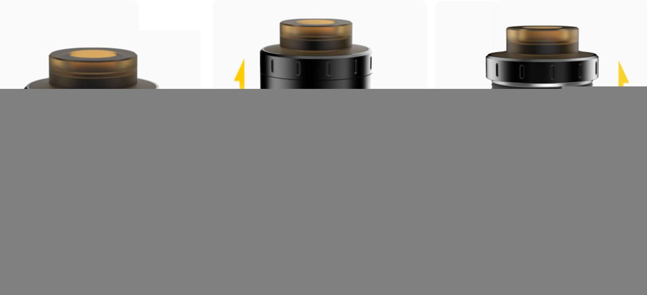 Незамысловатая конструкция имеет в своем распоряжении пять частей: дрип-тип из Ultem-материала, топ-кэп, кольцо регулировки обдува, база и позолоченный пин коннектора. Также Medusa получила стойки типа Velocity с внушительными, что видно из рендеров, отверстиями для установки койлов.
