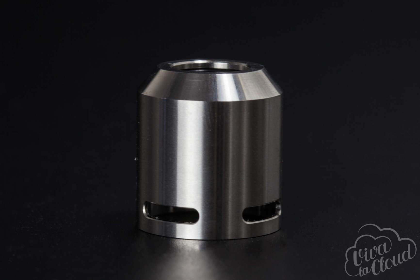 Сухие о-ринги спокойно позволяют взять дрипку за корпус даже на установленном боксмоде, а вот если их смочить, то все соскочит и легко упадет. Немного криво, то есть не симметрично установлены стойки. Ну и периодически между юбкой и базой накапливается конденсат, но это проблема свойственна всем атомайзерам с такой регулировкой обдува. Кстати, если капать через дрип-тип без фанатизма, то ничего не течет — жидкость нормально распределяется по ванночке.