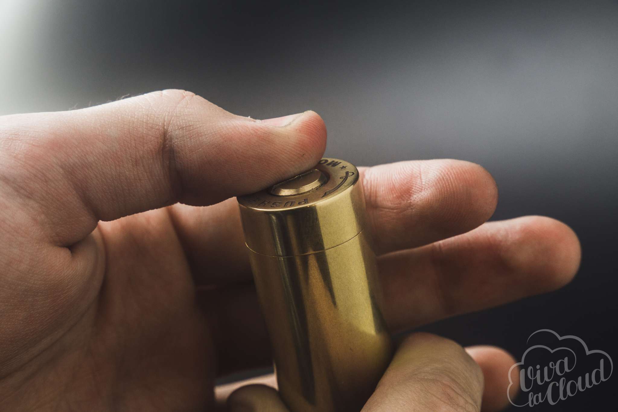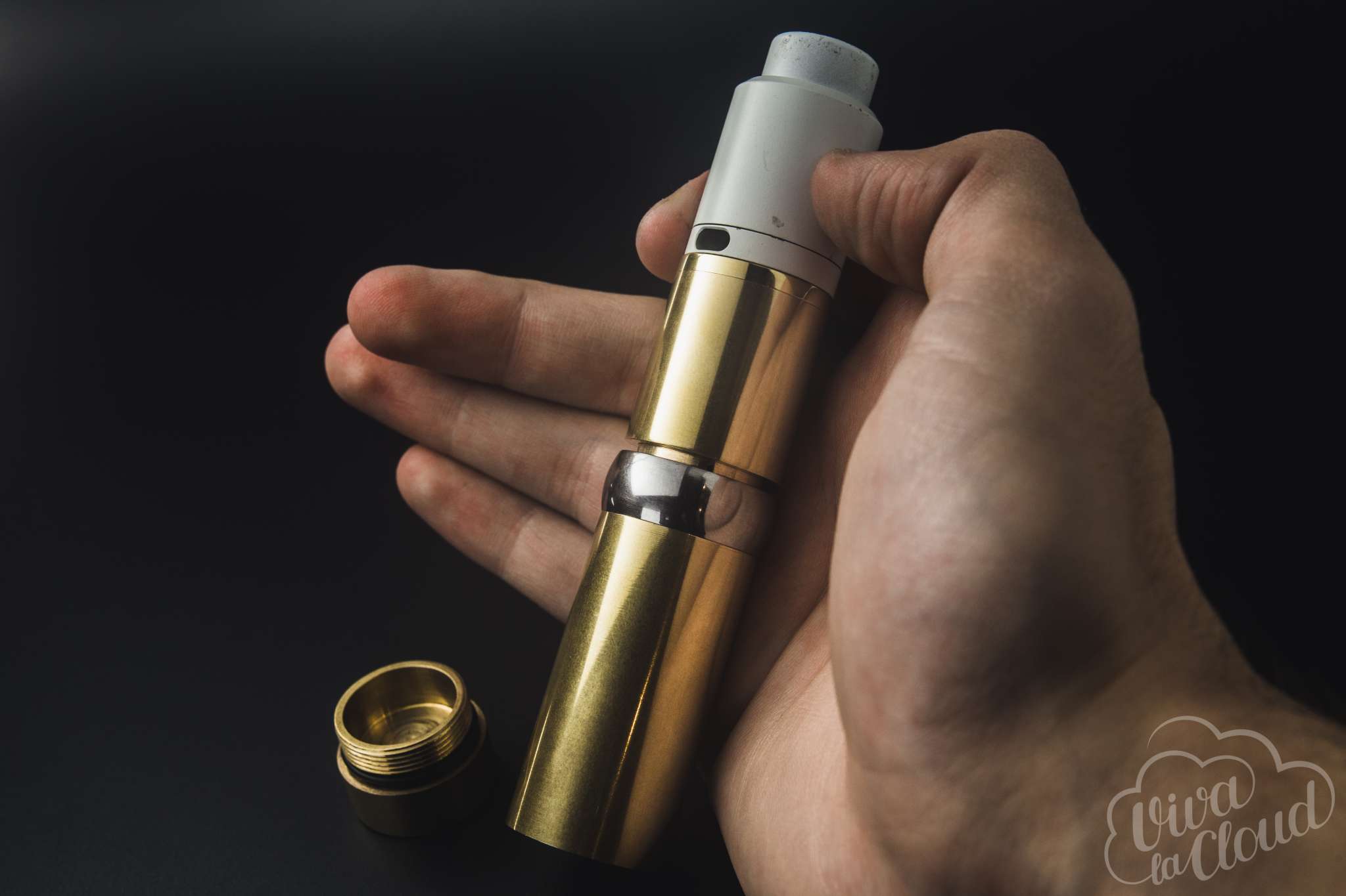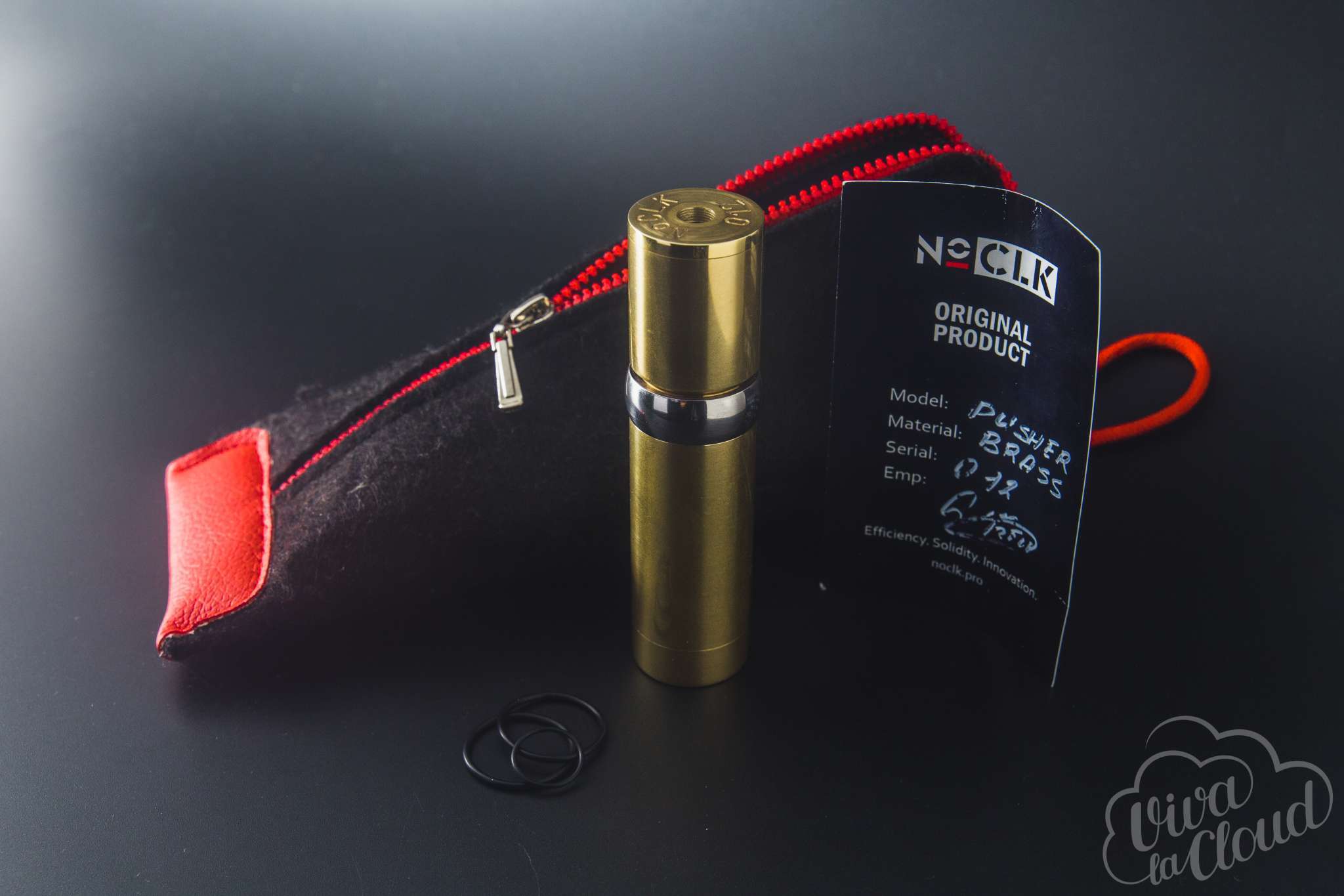Pusher представляет из себя латунную трубу диаметром 24 мм и металлическим кольцом в верхней трети корпуса. Pusher выше остальных механических модов.