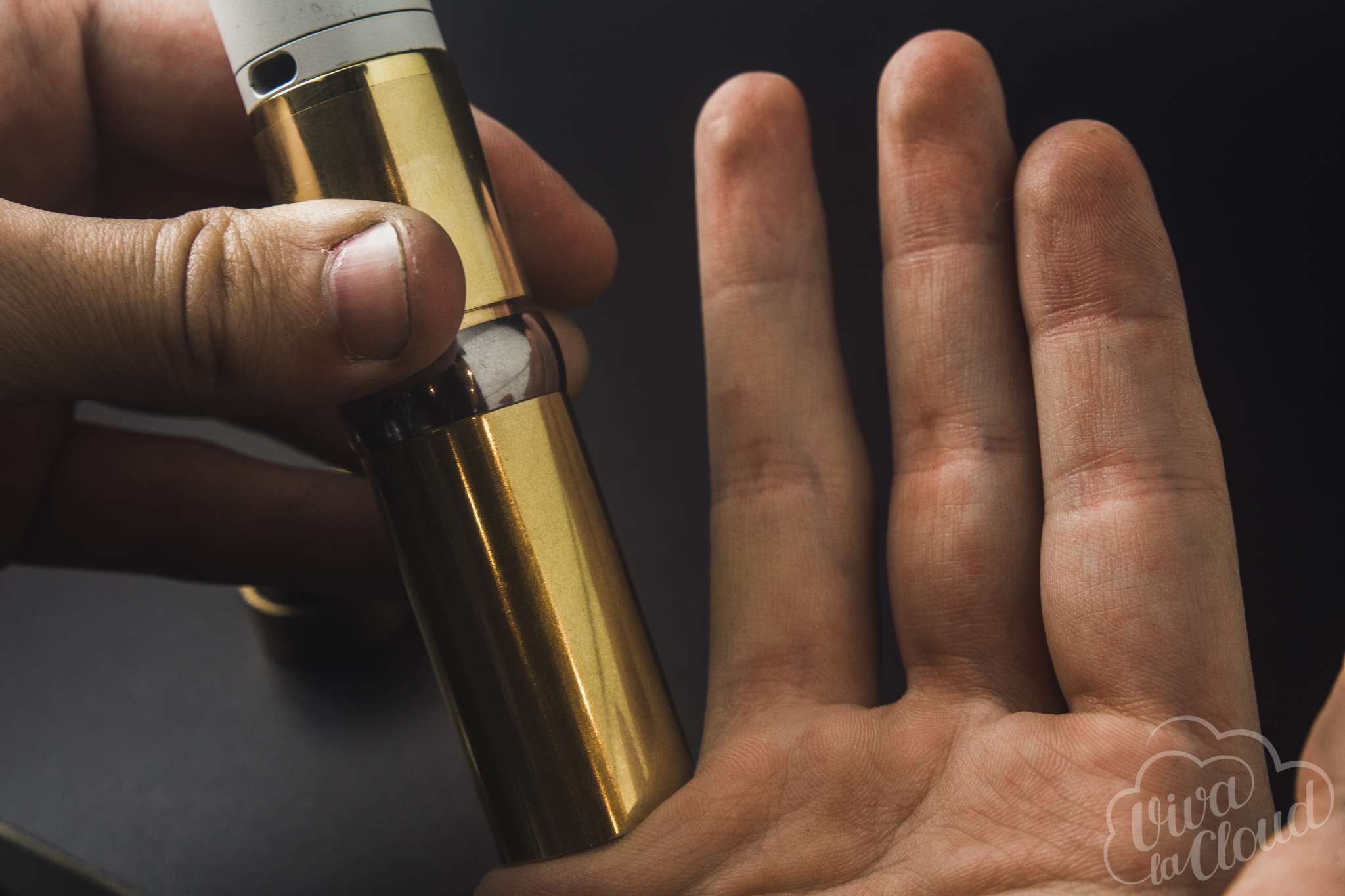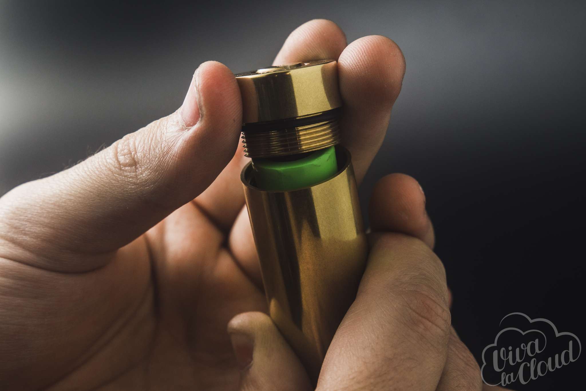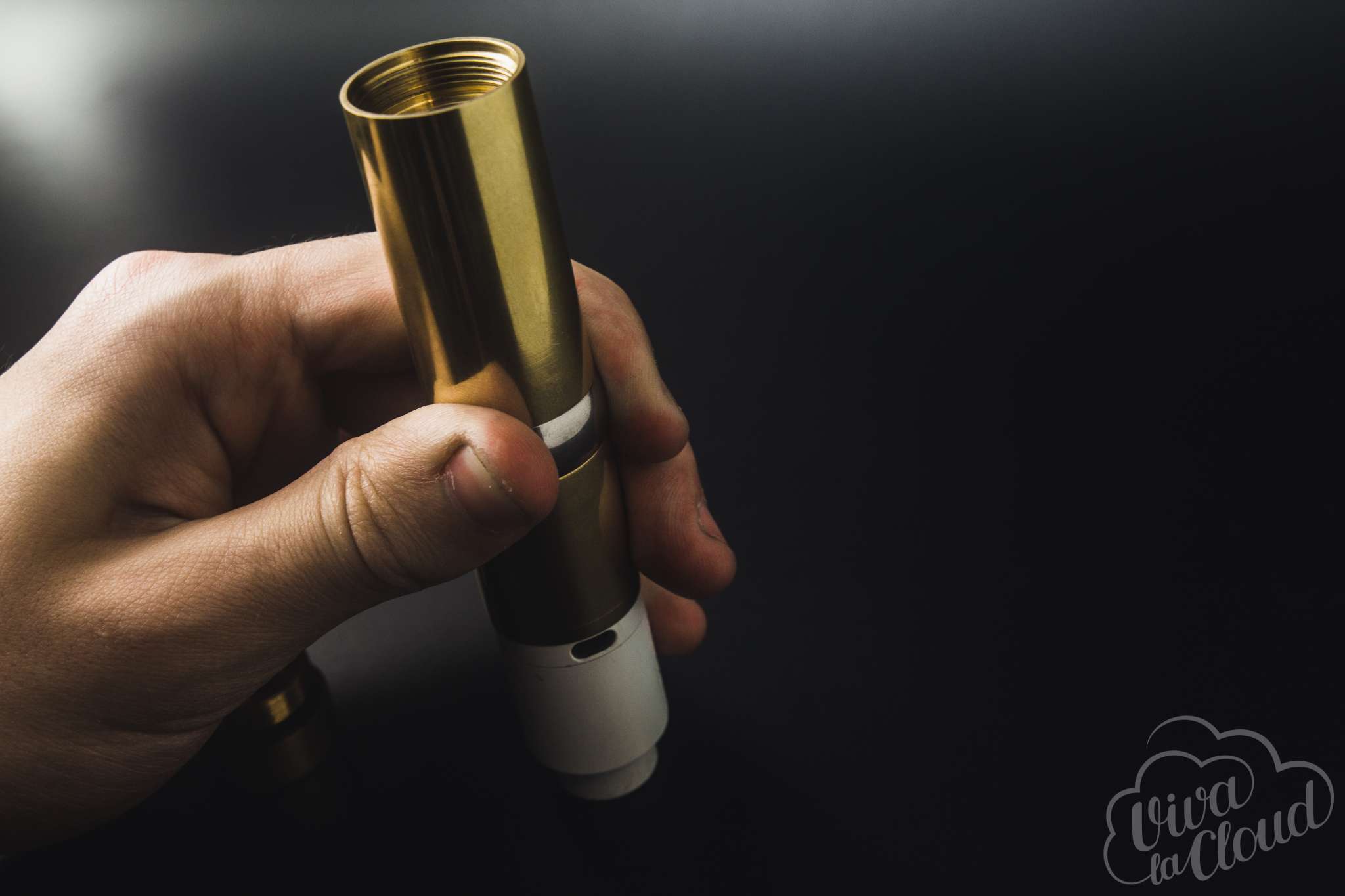 Pusher представляет из себя латунную трубу диаметром 24 мм и металлическим кольцом в верхней трети корпуса. Pusher выше остальных механических модов.