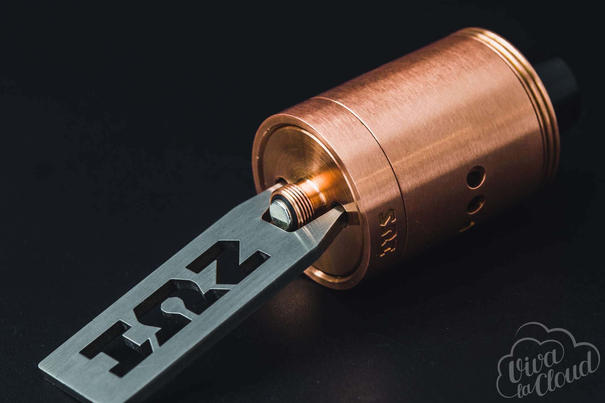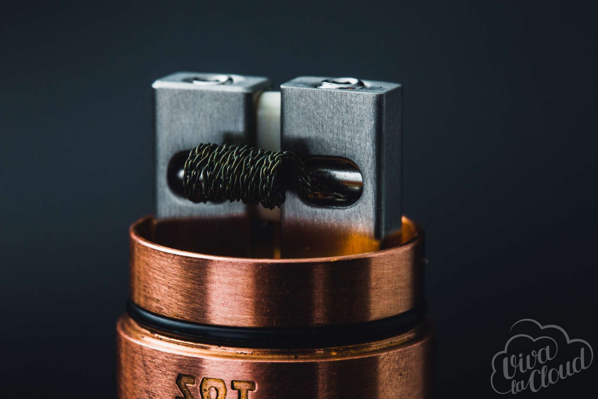 Ставить сюда можно внушающие страх намотки: размер отверстий — 6 на 3 миллиметров. Мне хватило фьюзда (0,5 кантал, 0,1 нихром поверх. 5 витков на 2,5 оправу). При двух закрытых отверстиях обдува вкусопередача выше среднего. Но вкус тут — не основная цель: Subzero X RDA — атомайзер для соревнований.