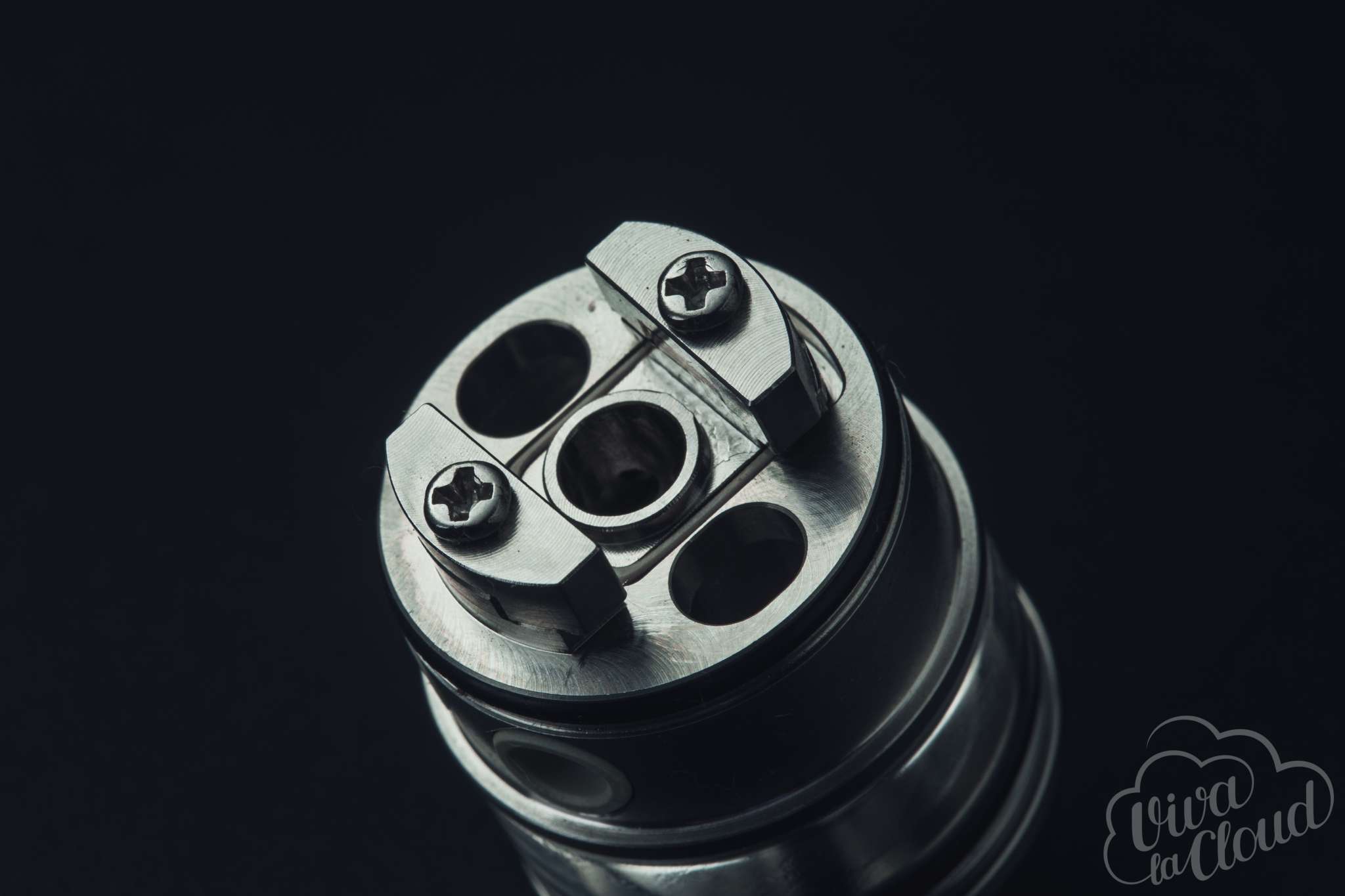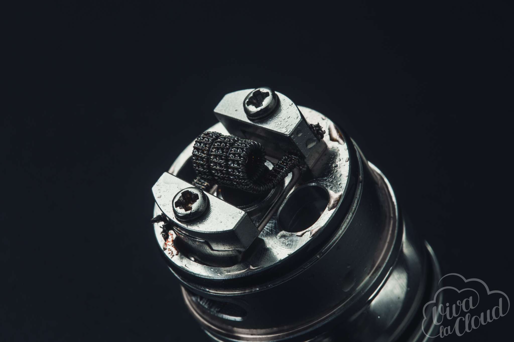 База удобна для простых намоток. Здесь используется прижимная система — если ставить «параллель», зафиксируется более толстая спираль, что крайне неудобно для сложных койлов. Конечно, можно извернуться и поставить две спирали, но смысла в этом нет. Они не будут как следует обдуваться, да и из-за небольшого купола пар будет некомфортно горячим. В общем, в Serpent RDTA лучше ставить Fused или Alien. Притом один.