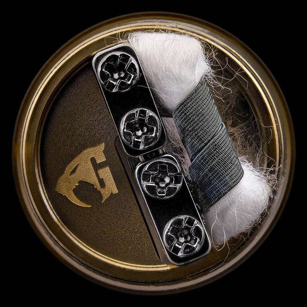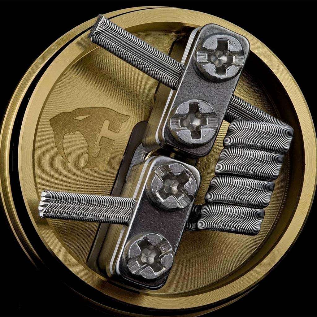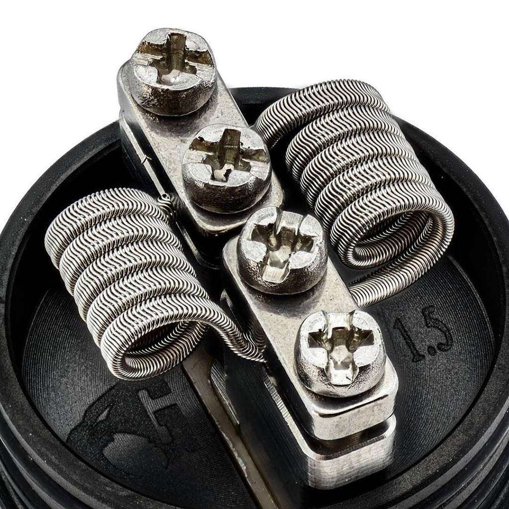 Компания 528 Custom Vapes опубликовала в своем инстаграме несколько фотографий, на которых изображена Goon 1.5. Это улучшенная версия первой Goon. Изменения коснулись отверстий обдува и стоек. Первый превратился в одно большое отверстие, регулируемое поворотом топкэпа. Спирали теперь прижимаются сплошной пластиной, а отверстия для билдов значительно увеличились. На одной из фотографий показано, как в отверстие для спирали устанавливается тринадцать 1-миллиметровых жил.