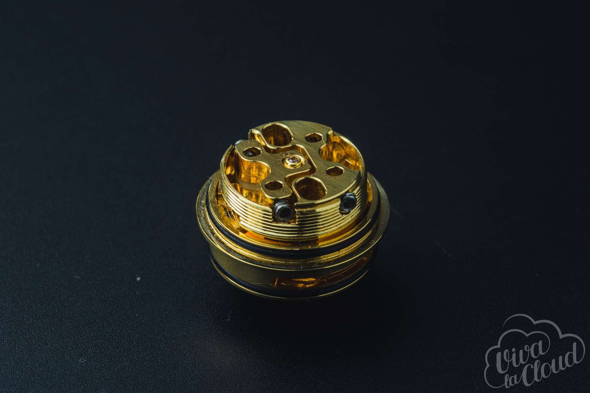 Золотой цвет бака делает его одновременно привлекательным и отталкивающим. Кому-то, может, он понравится. Но лично я не хочу ходить с устройством, которое при блике от солнца выжжет глаза. Золотая гальваника, однако, в случае с Petri RTA 24 оправданна. Атомайзер полностью сделан из латуны: гальваника — простой способ защитить пользователя от окиси. В результате бак и не греется, и не вредит здоровью.
