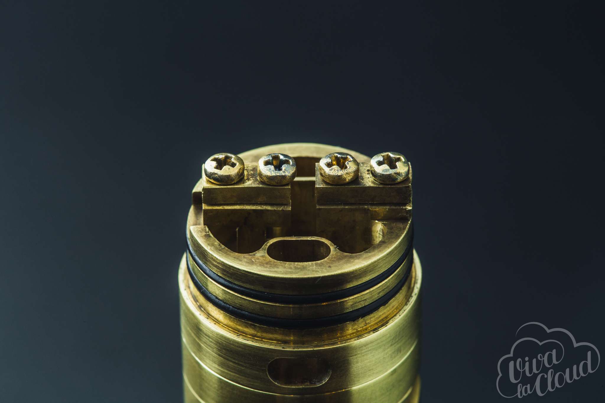 Дрипка также имеет на себе логотип. Он расположен на топкепе. На нем же — разъем для 810 дриптипа, а под ним — трубки нижнего обдува, ванночка для жидкости и «гуноподобные» стойки. Обдув, при этом, не регулируется. Изнутри купол имеет полусферическую обработку.