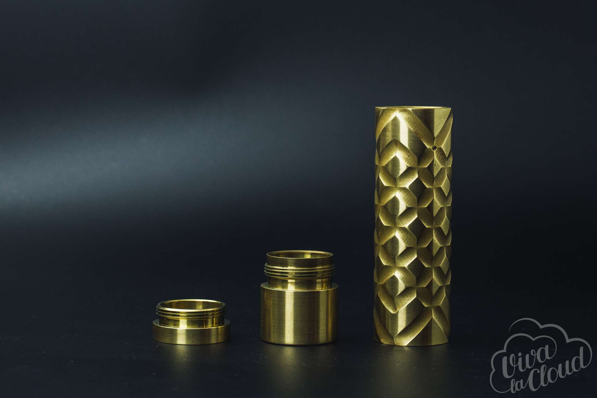 Механический мод тоже сделан из латуни. Корпус снабжен насечками, из-за чего приятно выглядит и не скользит в руках. Их грани, пусть и грубовато обработанные, приятно «играют» на свету. В общем, выглядит мехмод замечательно. Кнопка тоже сделана хорошо — ход не вызывает нареканий. Утоплена в корпус она тоже довольно неплохо: «прожарить» атомайзер, с размаху поставив сетап на стол, не получится.