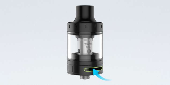 Бак рассчитан под сменные BVC испарители. Производитель отметил, что оптимального вкуса можно добиться на 25–35 ваттах.