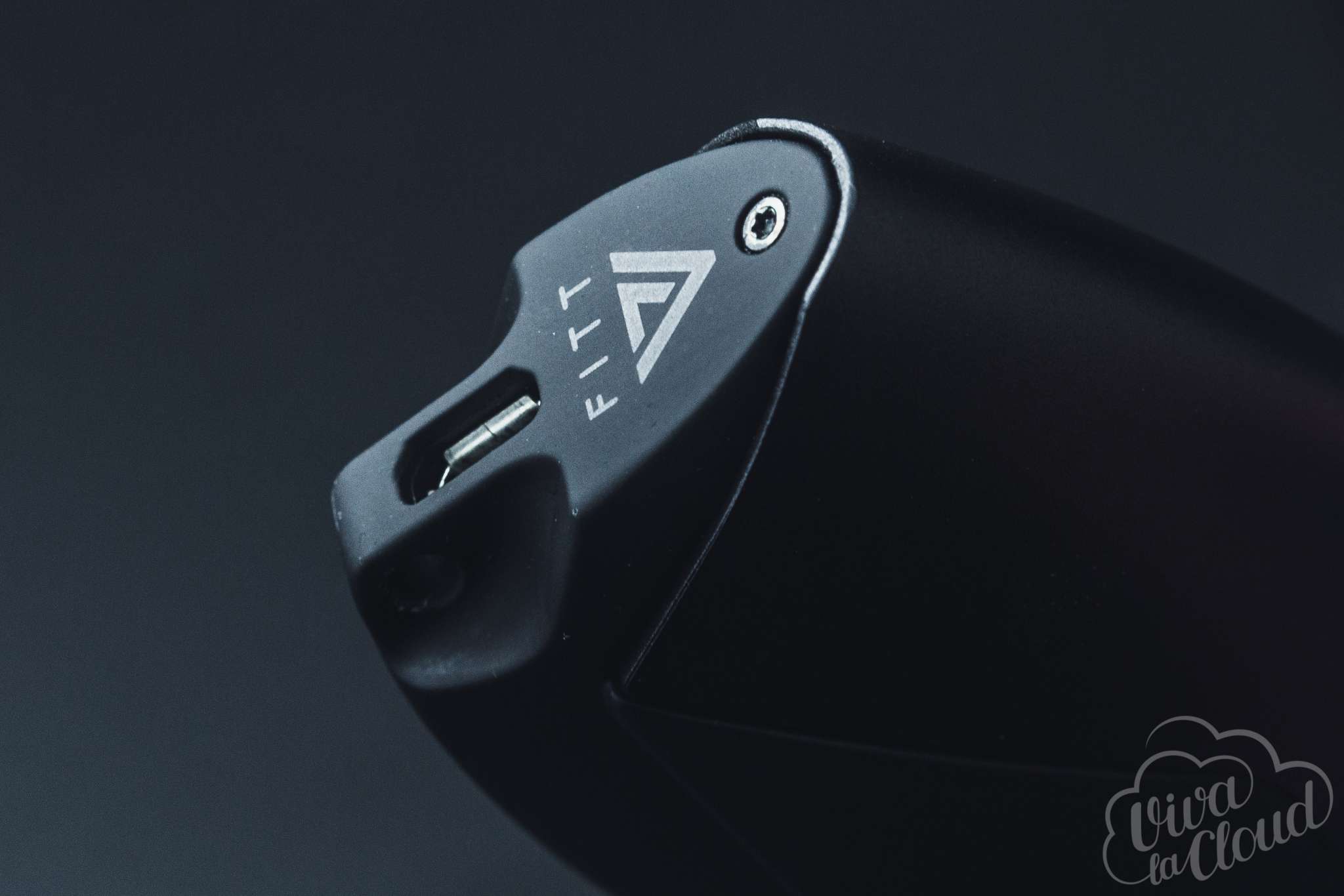 Выглядит FITT как брелок или пульт сигнализации от автомобиля. На нижней части даже есть отверстие, чтобы пристегнуть к нему ремешок или, чем черт не шутит, ключи. На торце есть кнопка и светодиодный индикатор, разъем для зарядки — внизу. Аккумулятора мне хватает где-то на полдня. Покрыто устройство матовой софт-тач краской, которая явно требует аккуратного и бережного использования.