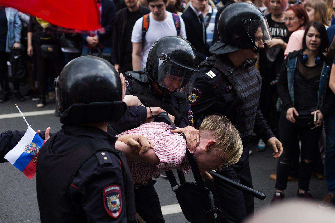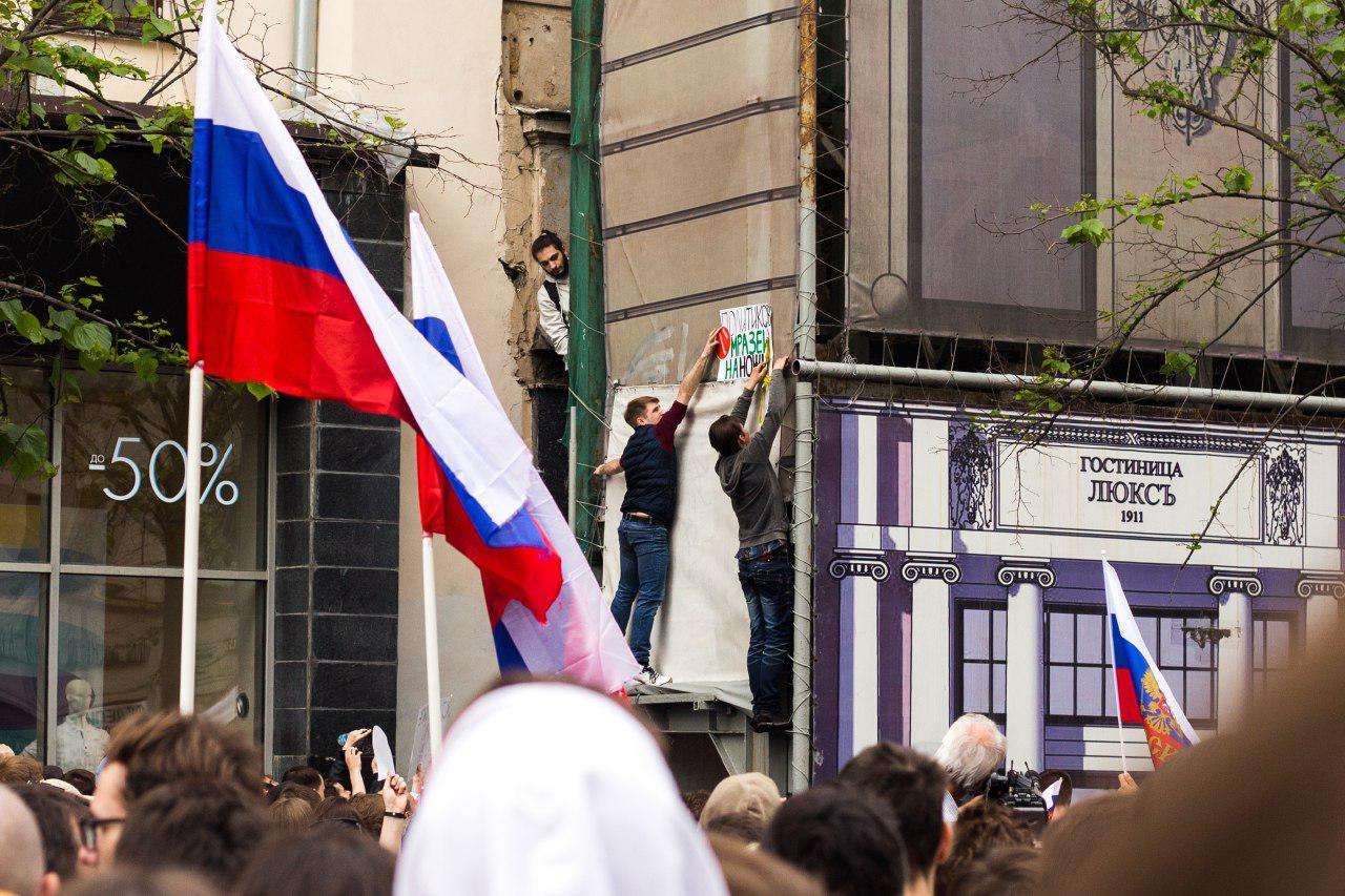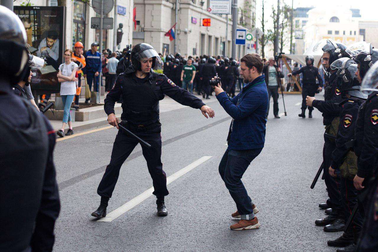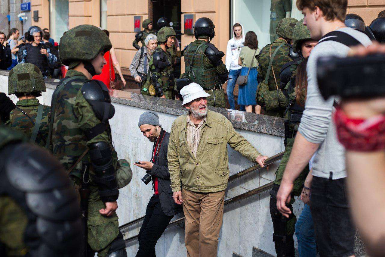 Полиция сдерживала толпу, не позволяя попасть с Пушкинской площади на Тверскую. Митингующие расходиться не желали, залезали на фонарные столбы и заграждения, выкрикивали антиправительственные лозунги. Доминировала двухсоставная кричалка: сначала «Раз, два, три, Путин, уходи», потом «Три, два, раз…» Силовики пытались оттеснить людей к «Охотному ряду», прямиком в сторону Средневековья.