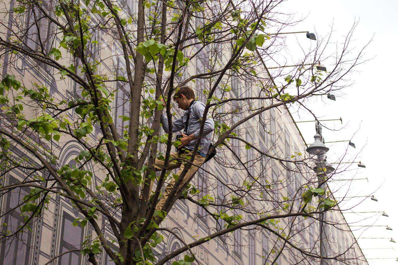12 июня Тверскую закрыли рамками металлоискателей. В начале улицы разбили инсталляции и шатры на тему Средневековья и времен Рюриковичей. Народ увлеченно следил за рыцарскими боями, время от времени одаривая бойцов аплодисментами. Тема развития страны продолжалась и дальше — от «Охотного ряда» к «Пушкинской» — на площади имени поэта обнаружилась метафора новейшей истории. Перед нашими глазами возник несанкционированный антикоррупционный митинг Навального.
