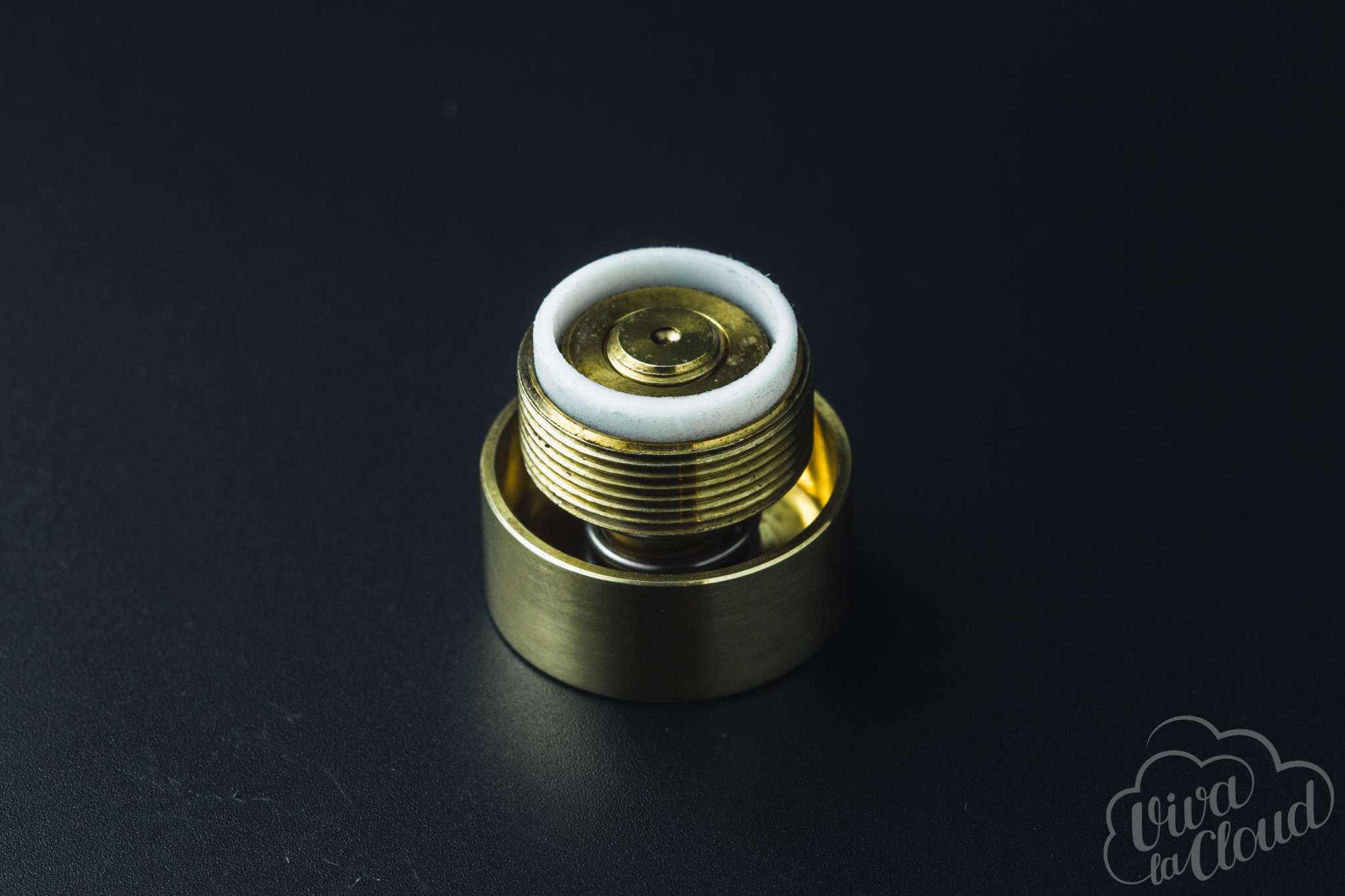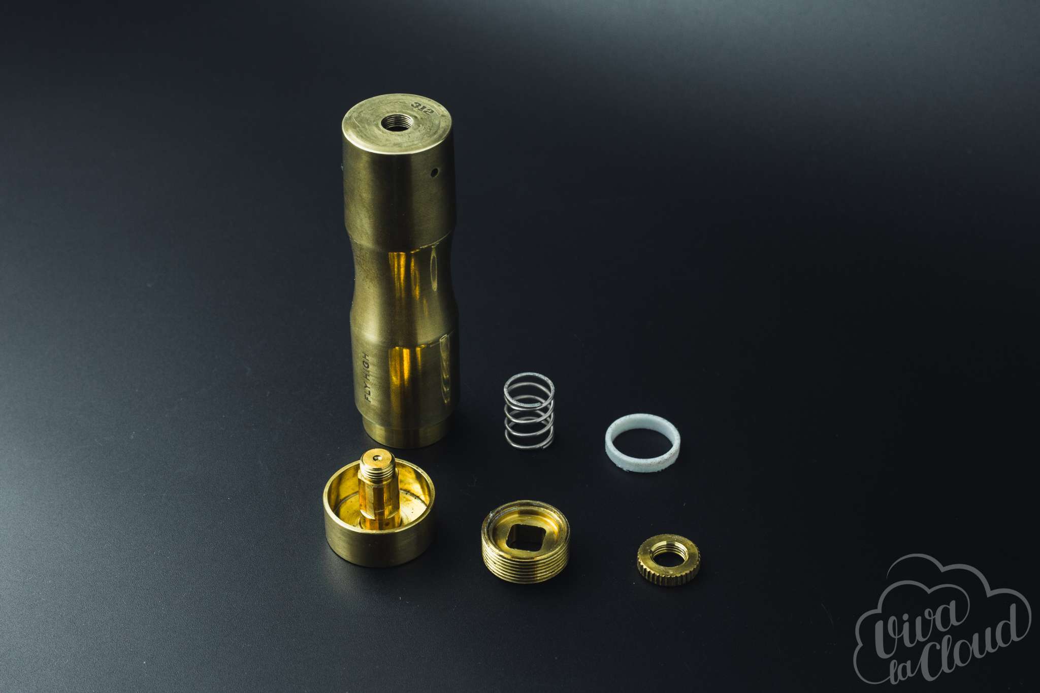 Кнопка в Pilot сделана по примеру Rogue. Она вкручивается в мод и упирается изолятором в аккумулятор, подстраиваясь под его высоту. Изолятор находится в шайбе с резьбой. В эту же деталь упирается пружина, отвечающая за возврат кнопки в исходное положение. Вся эта конструкция устанавливается на толкатель, а сверху закручивается шайбой поменьше.
