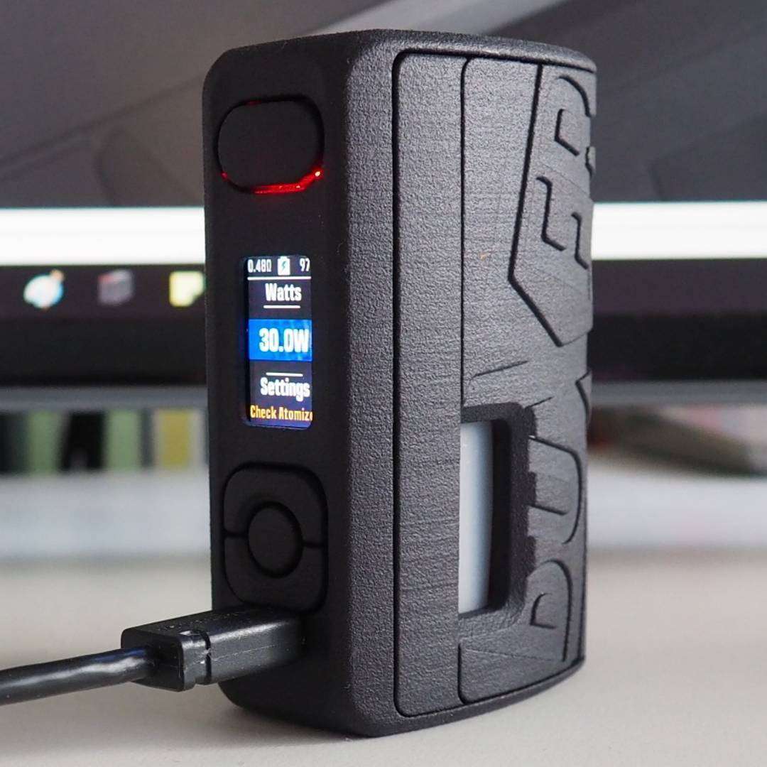 Девайс может работать с аккумуляторами двух типов: 20700 и 21700. Плата DNA 75C поддерживает зарядку через USB. Устройство обладает цветным экраном, а также, помимо вариватта, имеет термоконтроль.