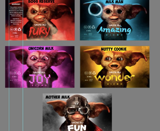 - Макет этикеток Gizmo, пересланный Питьевым от Катаева к Кузнецову 5 мая — до раскрытия линейки потребителю