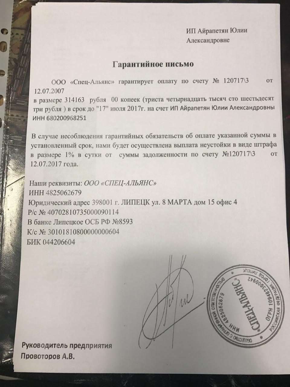 ООО «Спец-Альянс» — именно эта компания должна была заплатить Айрапетян — зарегистрирована в Липецке. Исходя из уставных документов, ключевые сферы деятельности фирмы — торговля строй- и лесоматериалами. Организацию еще в 2013-м году признали банкротом. В 2015-м это дело прекратили: задолженность «Спец-Альянса» превышала 4,2 миллиона рублей, а финансов и имущества не хватило даже на возмещение судебных расходов.