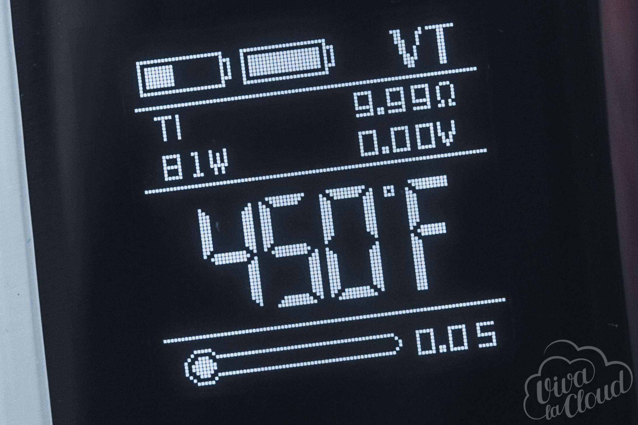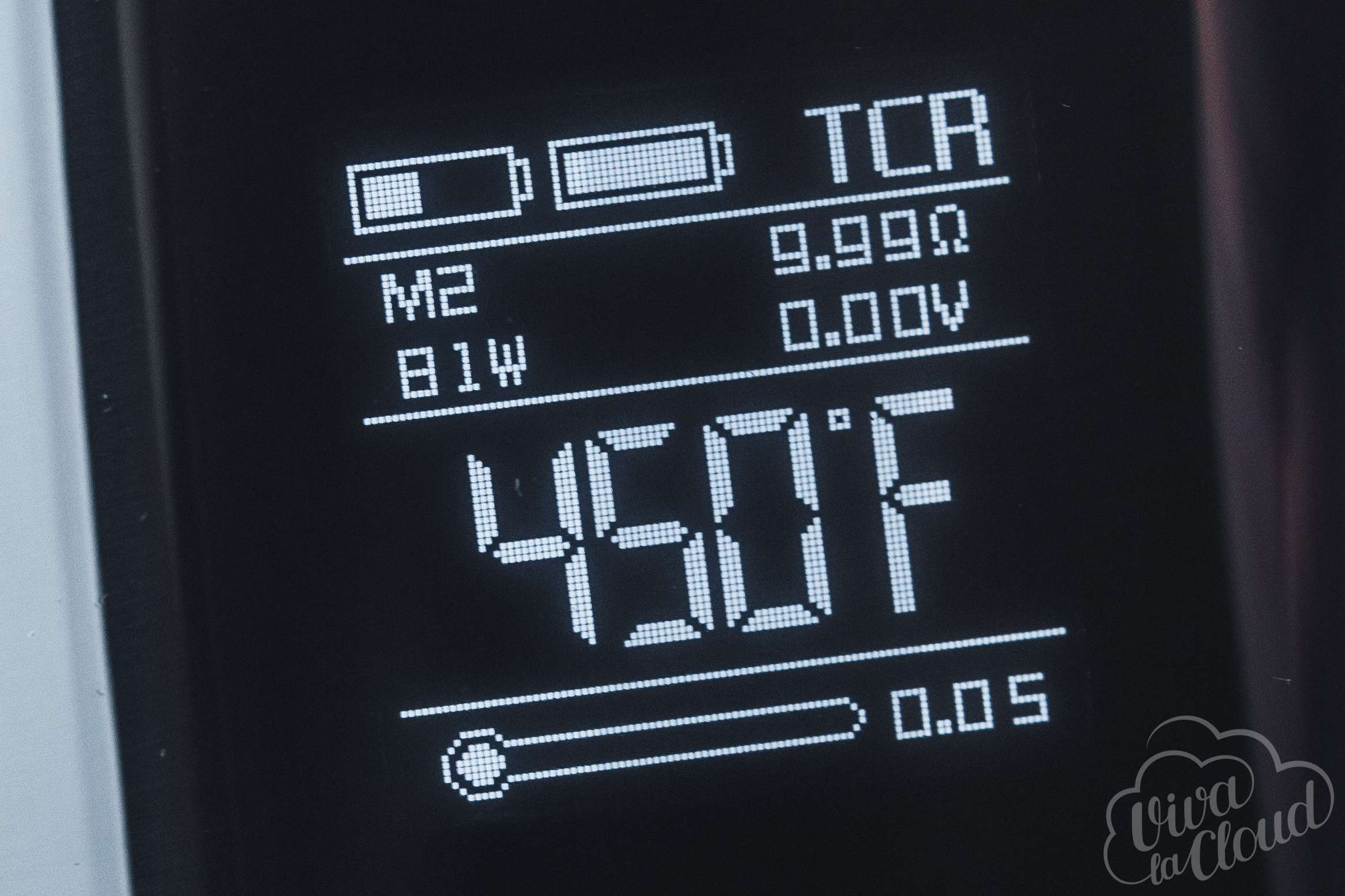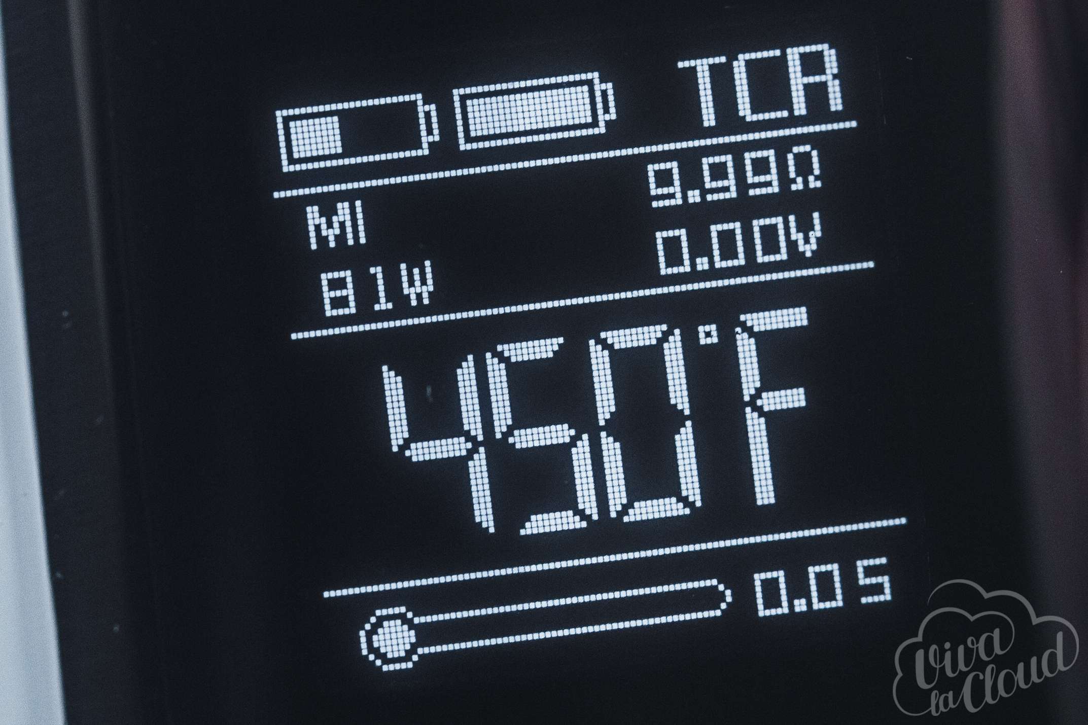 У Revenger, в отличие от других боксмодов, не две, а три кнопки управления. Для переключения режимов нужно удерживать центральную клавишу, а регулировать значения — боковыми. Выбрать есть из чего: настроек настолько много, что их количество может даже отпугнуть новичка. Особенно неудобно, что для настройки нужно пройти всё меню. К примеру, чтобы 10 ватт поднять мощность в режиме термоконтроля на стали, нужно потратить полминуты на путешествие через меню.