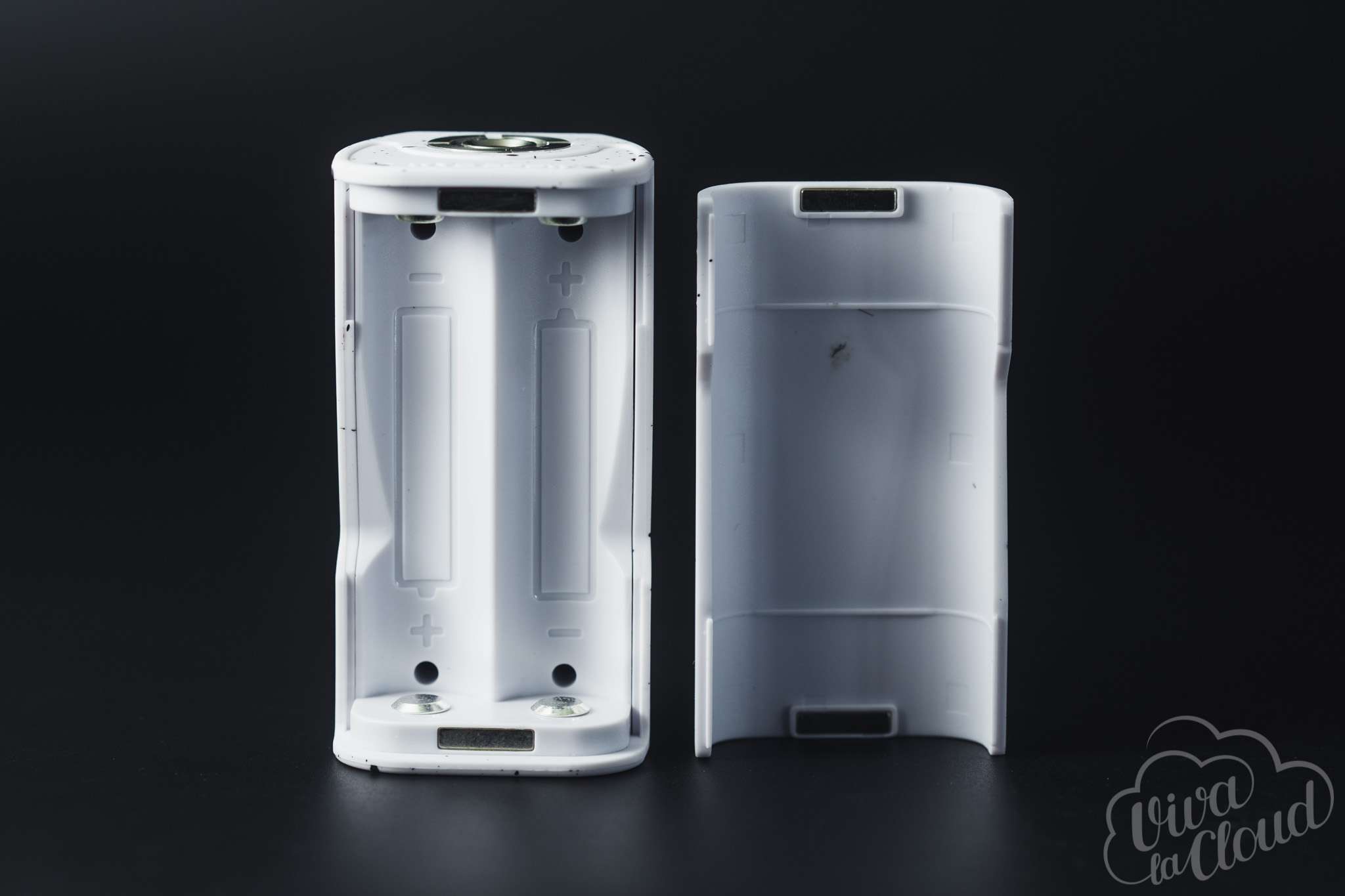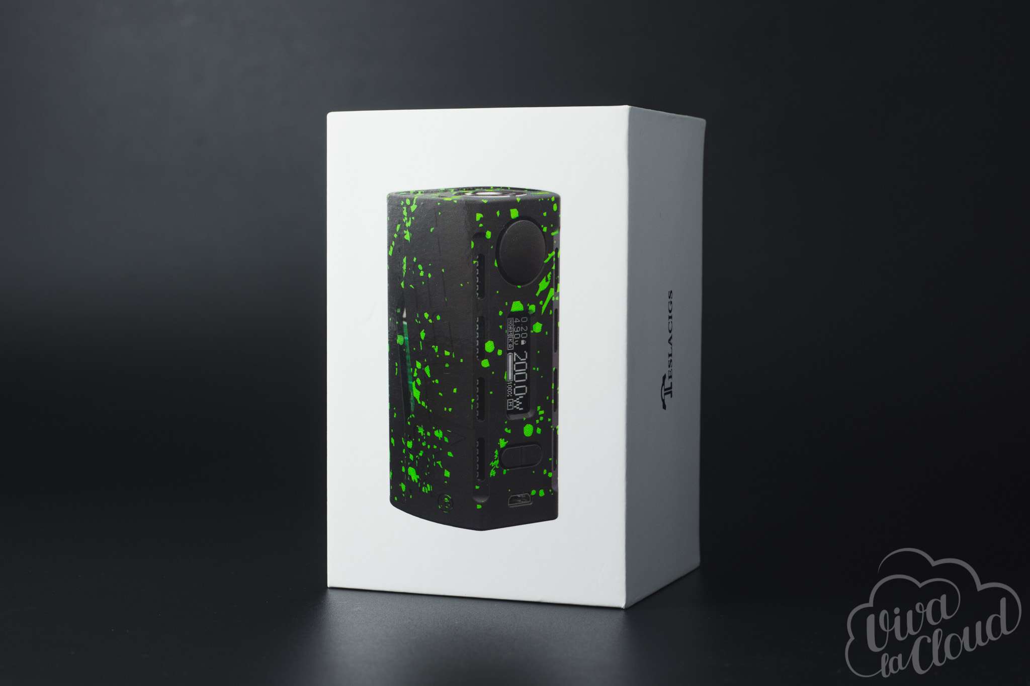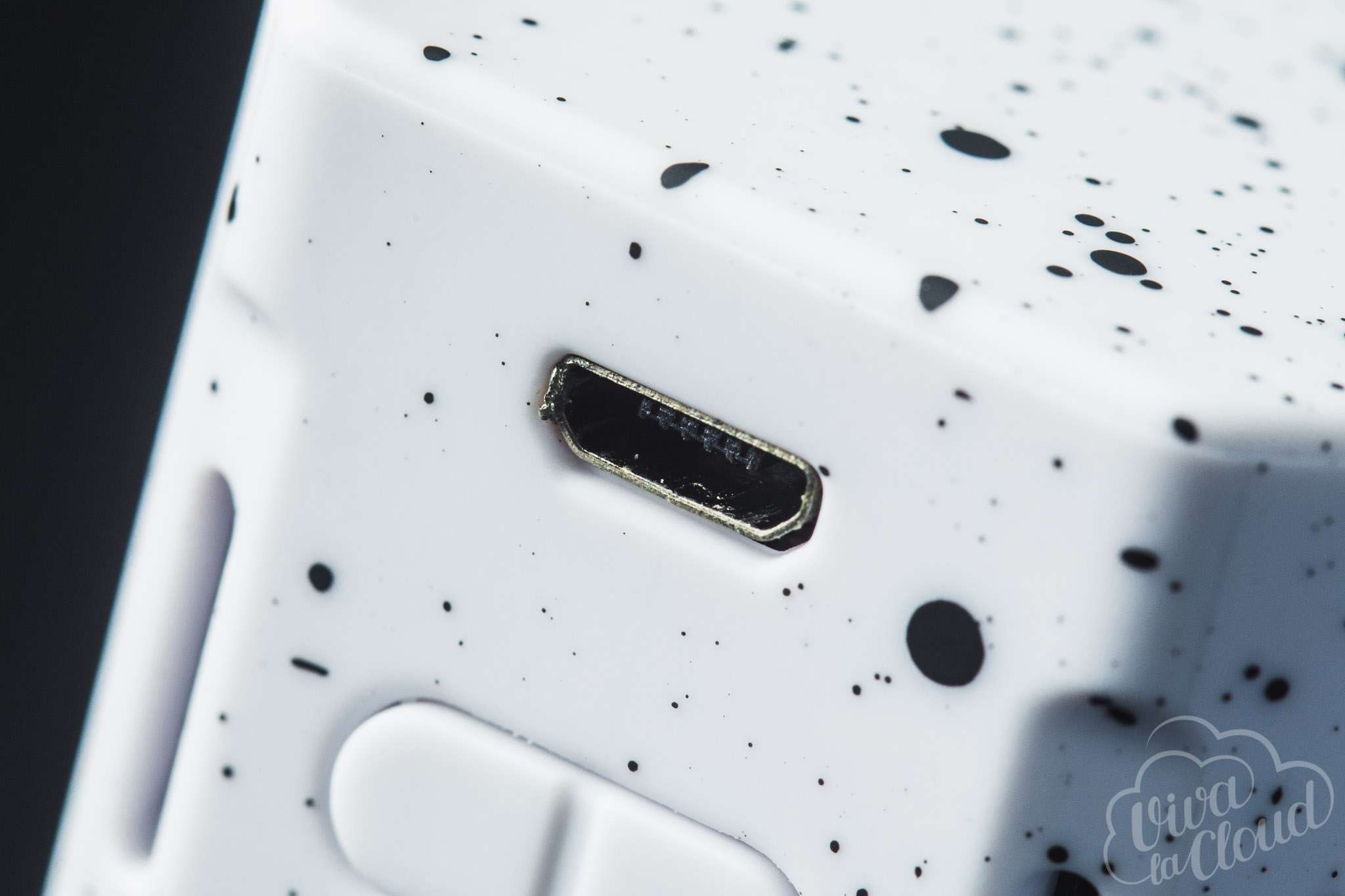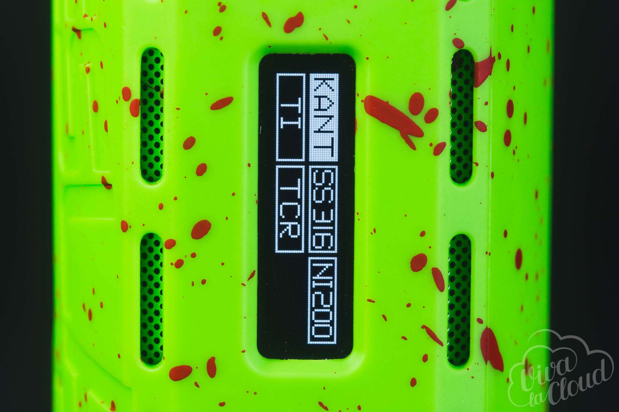 Все это, несомненно, портит первое впечатление об устройстве. Которое, впрочем, мгновенно исправляется, стоит взять девайс в руки: боксмод сделан из очень приятного на ощупь пластика. Спереди находятся дисплей, клавиши регулировки с кнопкой fire и USB-порт, по бокам — вентиляционные прорези, а сзади — крышка аккумуляторного отсека на магнитах. Окрашен девайс как бы в два слоя: сначала основной цвет, а сверху — дополнительный, сделанный в виде капель краски.