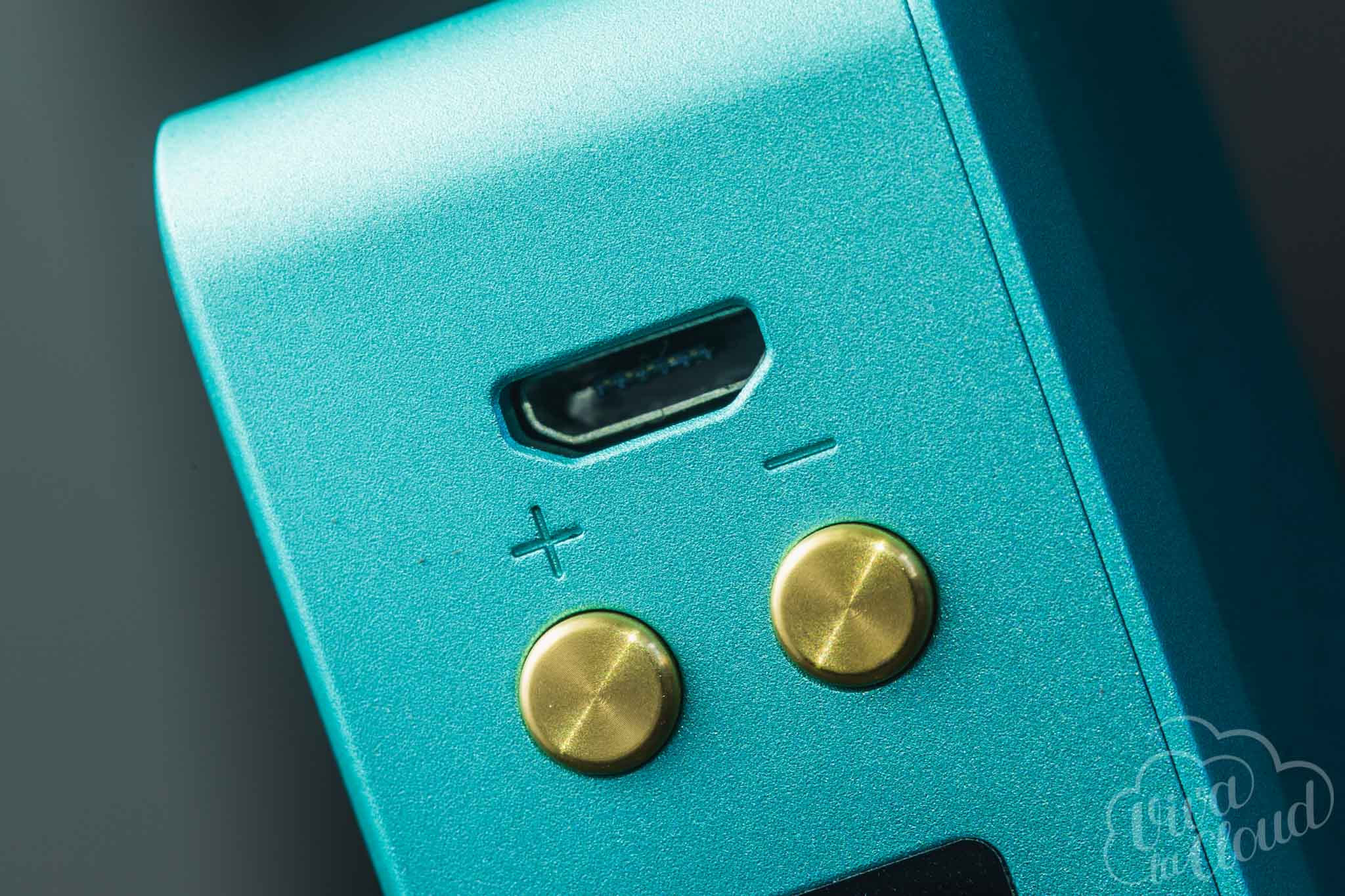 У всех моделей независимо от цвета позолочены кнопки и коннектор. На кнопке Fire — аккуратная гравировка, снизу — дисплей и мордашка из клавиш регулировки мощности и разъёма для зарядки. Снизу, что странно, нет отверстий вывода газов — вместо них тут гравировка логотипа и серийный номер. Вообще, производитель явно любит свой логотип, из-за чего тот нарисован на каждой детали набора. В том числе внутри боксмода, около места для аккумулятора. Тот, кстати (несмотря на хлястик), поначалу довольно туго выходит из пазов. Но через неделю проблема исчезает.