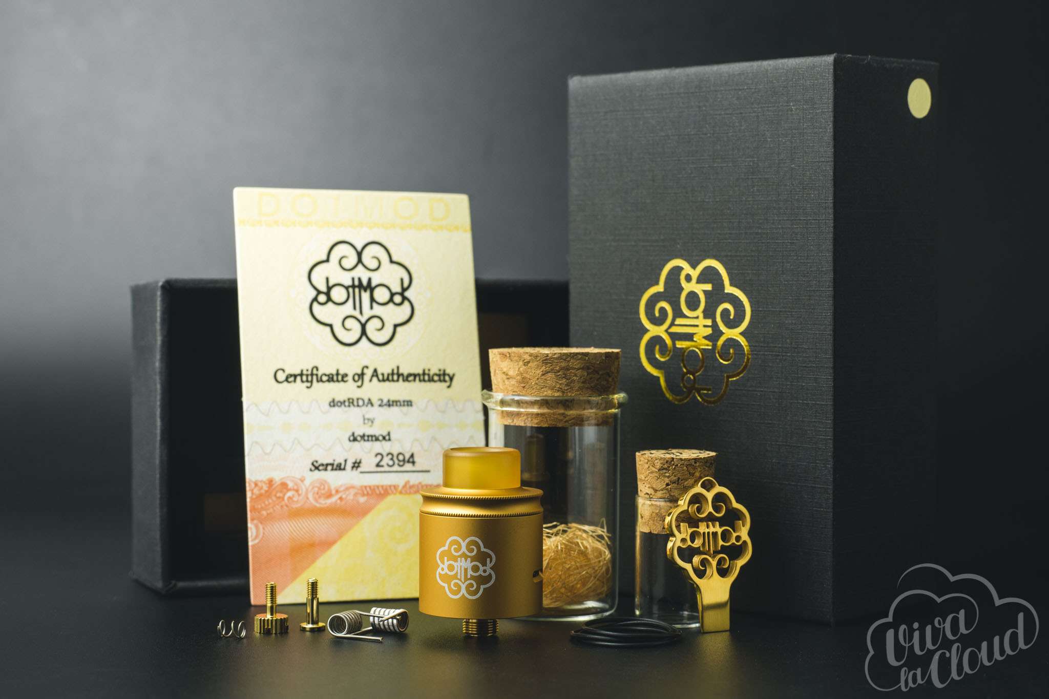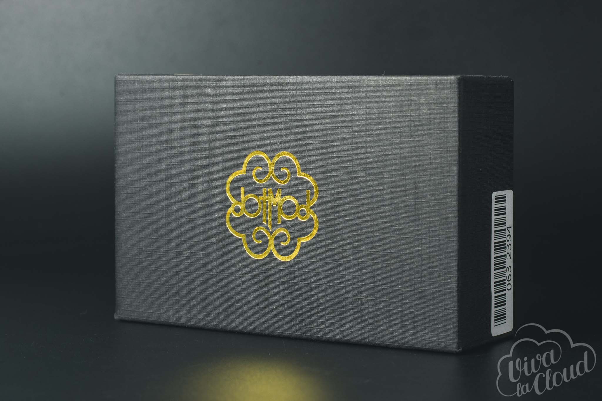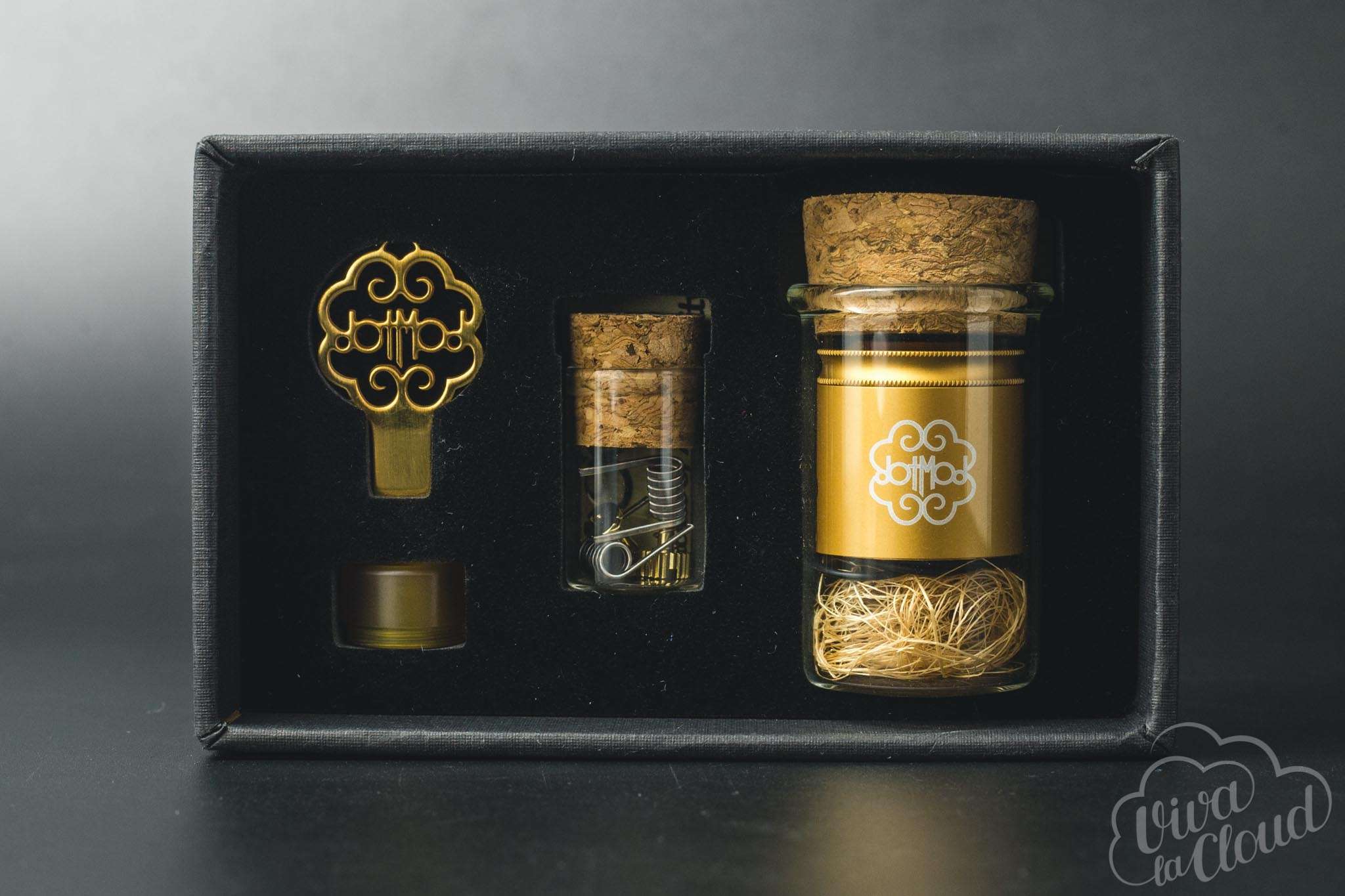 Фирменная коробочка со стеклянными флаконами дополнилась ключом в виде логотипа компании. В большом лежат атомайзер и запасные оринги, в маленьком — 2 намотки, сквонк-комплект и запасная пружина. Сертификат подлинности тут исполнен как и в других продуктах компании.