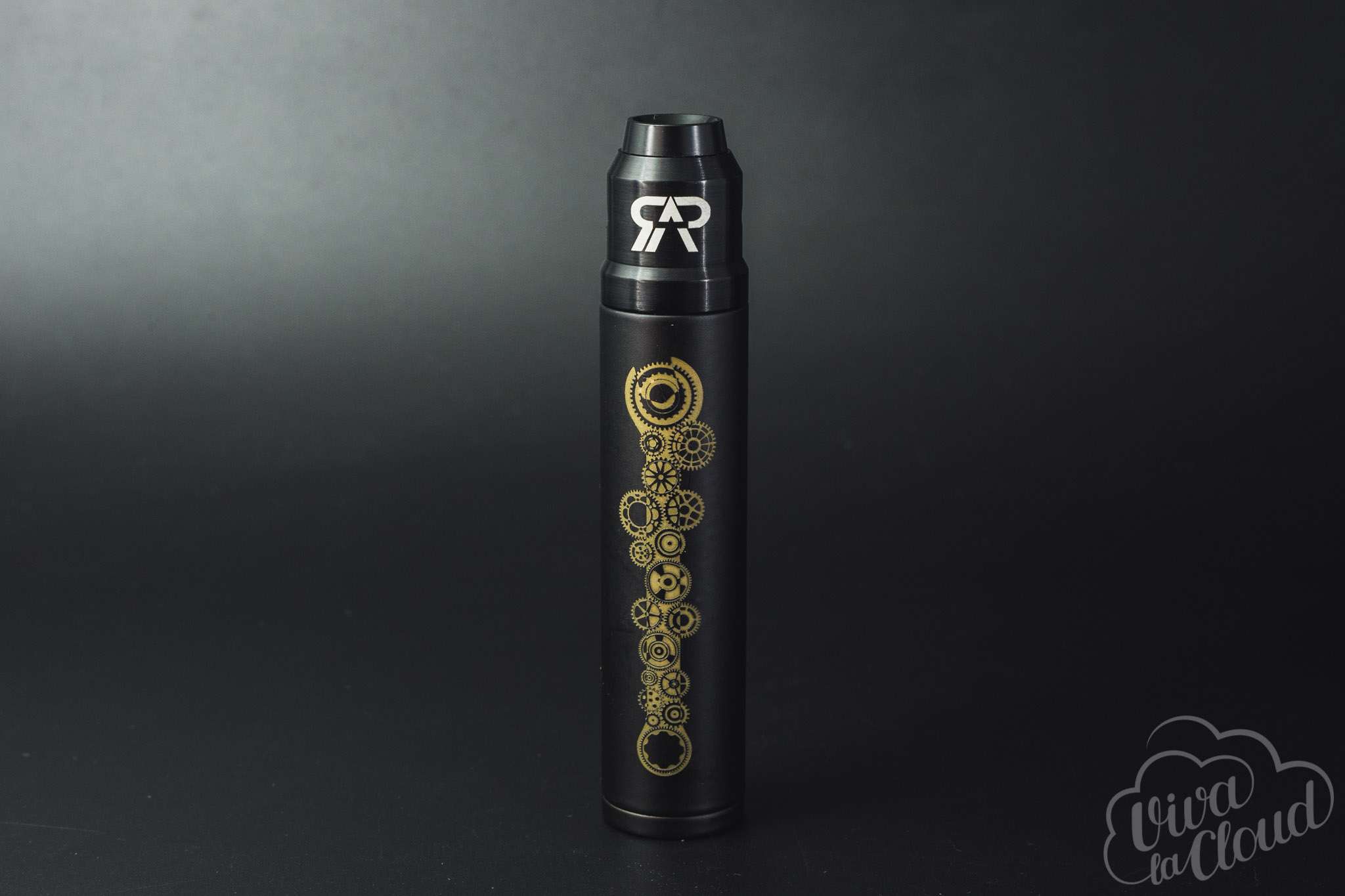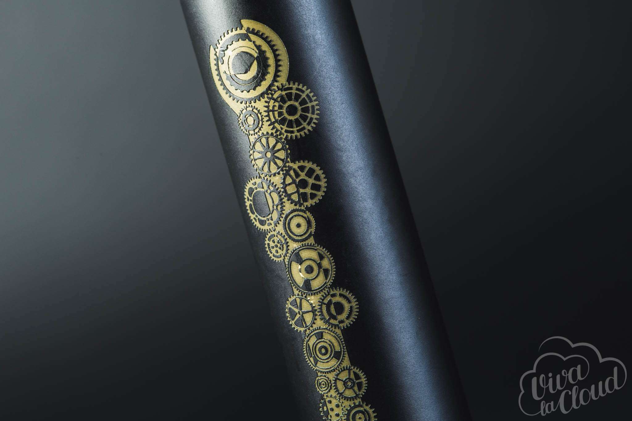 Сам Spanner довольно прост; нам пришла черная матовая версия. Внешний вид мехмода не разочаровывает. Мехмод кажется довольно компактным и без проблем помещается в руку. В ладони девайс не скользит. На одной из сторон находится гравировка с гаечным ключом и шестеренками. Она невероятно бесит: я, конечно, не Артемий Лебедев, но шестеренки, не соединяющиеся между собой, — ад перфекциониста. На посадочной площадке есть небольшое углубление с названием компании-производителя, а на кнопке размещен логотип блогера Maskit. А еще она через пару дней покрылась царапинами.