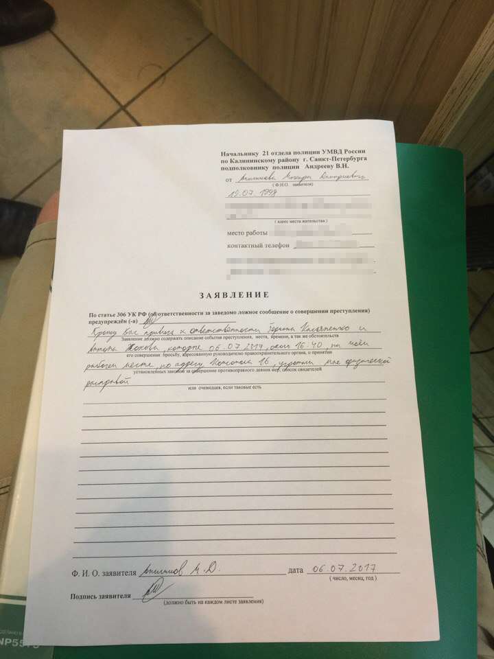 - Заявление в полицию