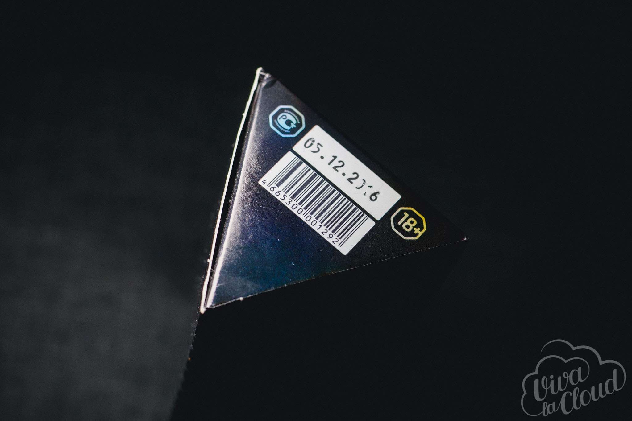 Приезжает жидкость в треугольных коробках. Каждая из них имеет свой характерный узор. На первой стороне пишется описание вкуса, на второй — предупреждения и условия хранения, а на третей — юридическая информация. На дне коробки печатаются дата производства, отметка «18+» и знак добровольной сертификации.