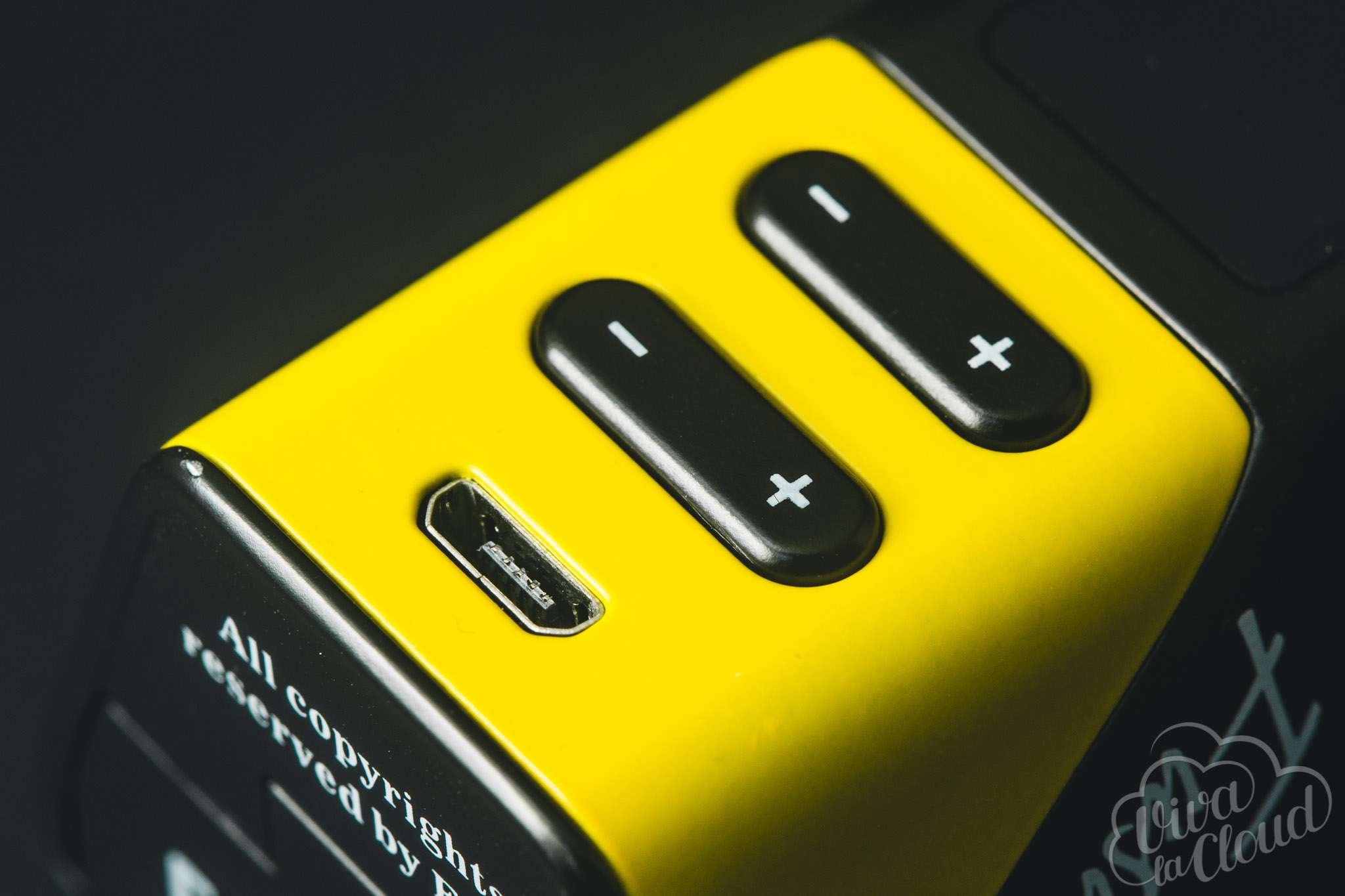 Внешний вид Fusion Kit язык не поворачивается назвать изящным: уж больно формы корпуса напоминают RX 2/3. В дизайне устройства преобладают прямые линии, поэтому курсивная надпись Fusion тут явно не смотрится. Аккумуляторы, в отличие от RX 2/3, заменяются через низ — соответственно, тут нет люфтящей крышки во всю боковую грань. На лицевой части девайса размещены обычный двухцветный дисплей и две качельки регулировки мощности. Они-то и скрывают главную фишку устройства.
