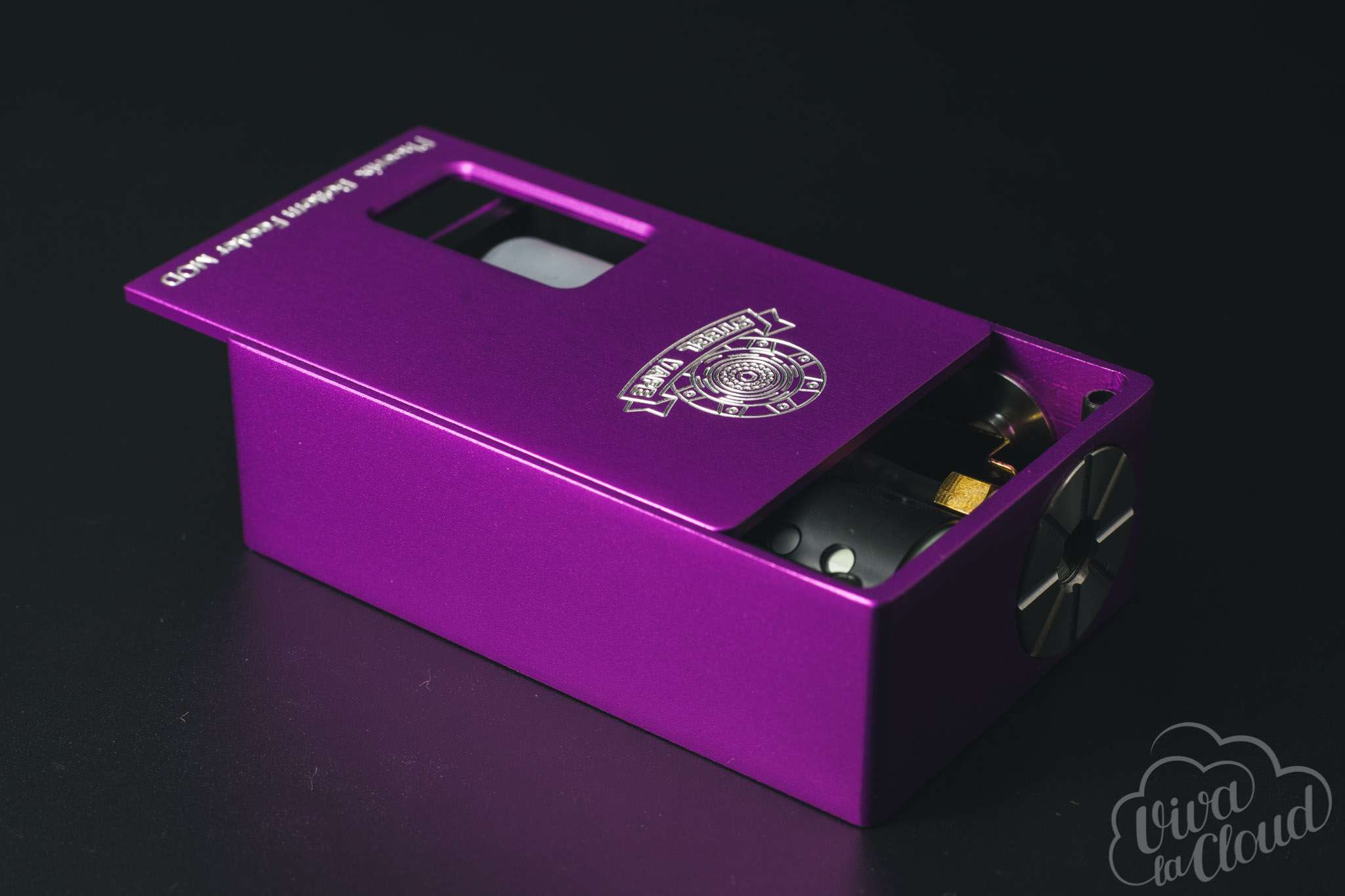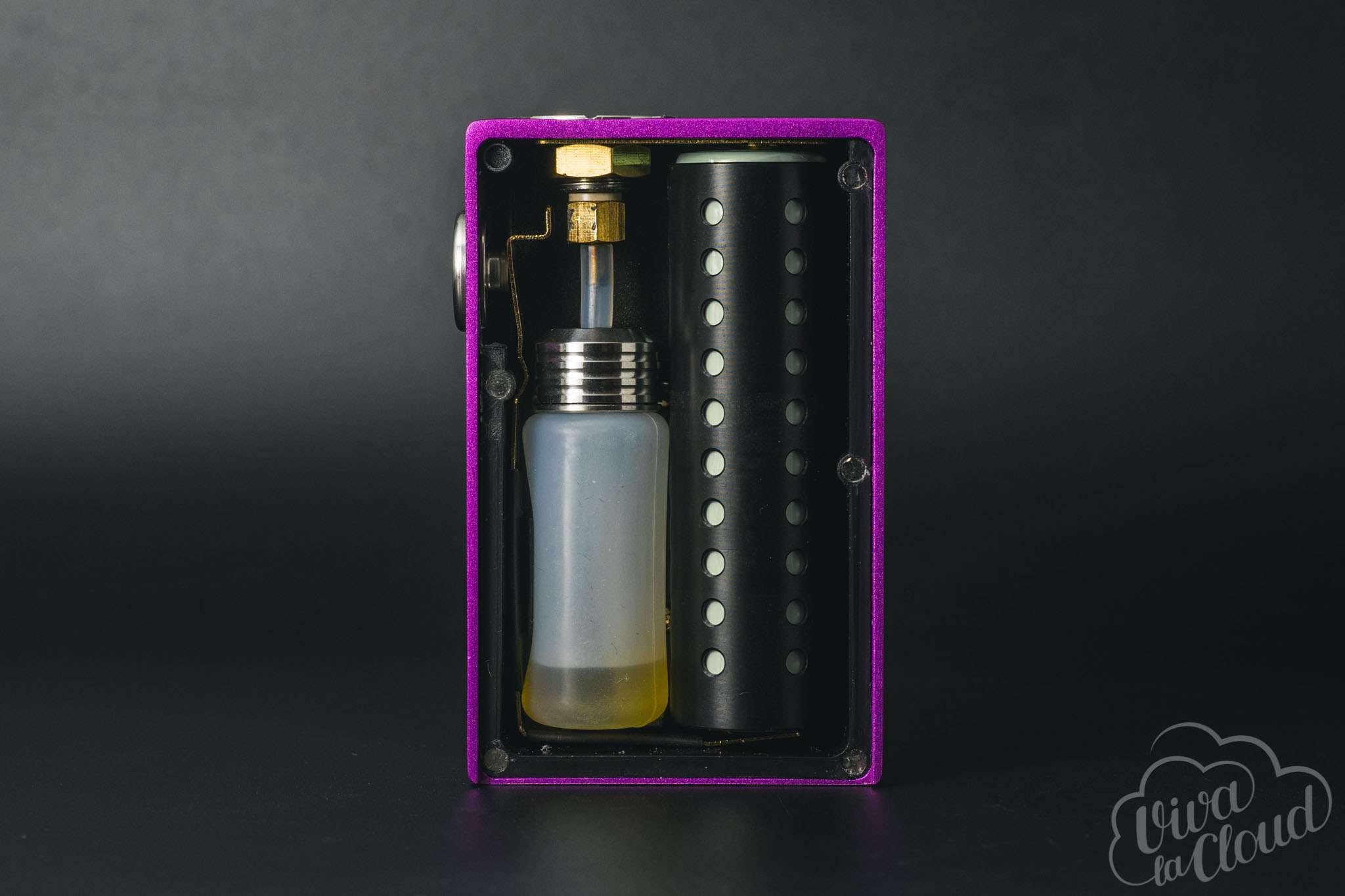 В набор входят как боксмод, так и атомайзер. Ремкомплект, инструкция, хлопок — все внутри. Также в комплекте есть винт, которым можно закрыть отверстие в пине дрипки и использовать ее на обычных модах. А еще есть дополнительный цилиндр обдува.