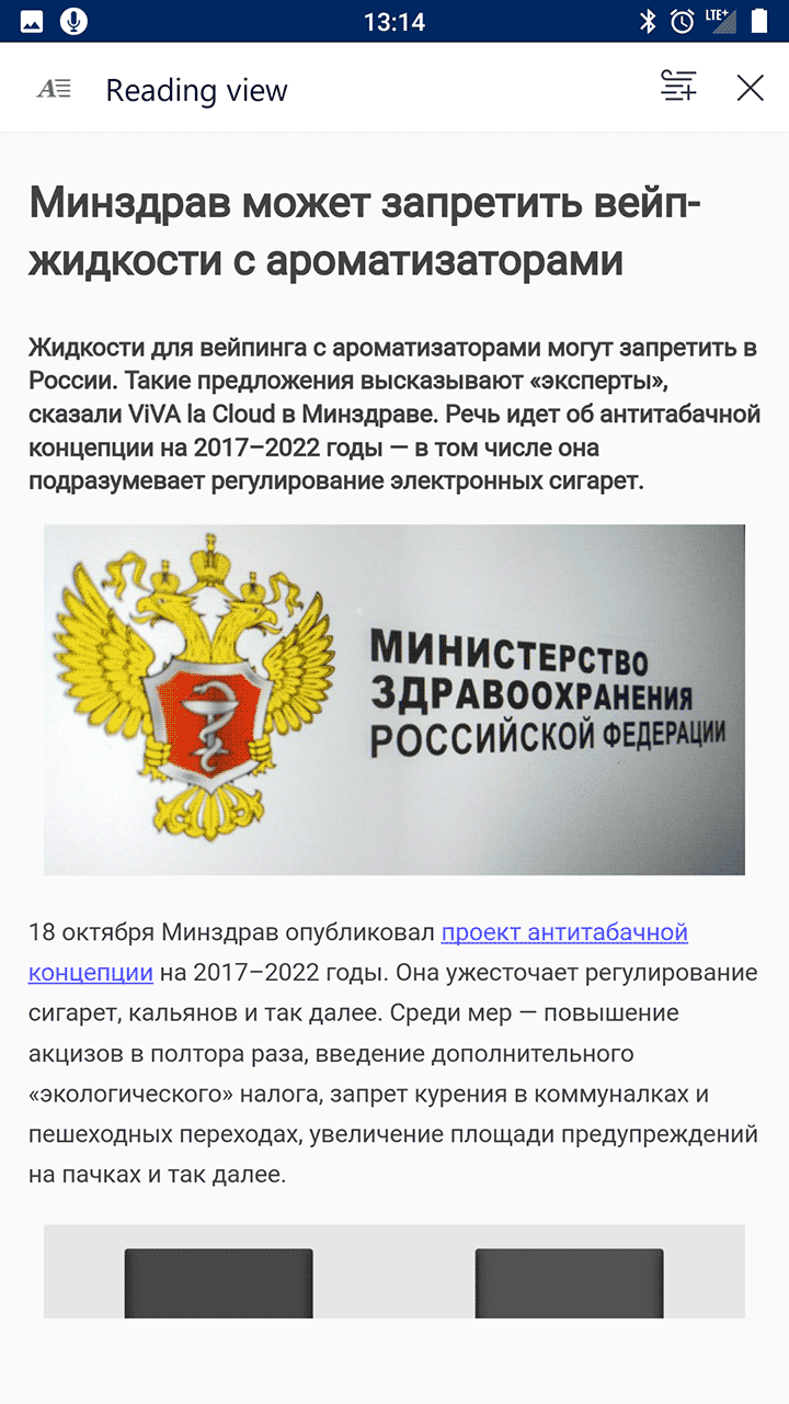 Режим чтения тоже реализован плохо. Он удаляет специфичную верстку сайтов, превращая все страницы в копии друг друга. Я проверил это на ViVA la Cloud, самиздате «Батенька, да вы трансформер» и «Медузе». «Вива» отобразилась нормально, на «Батеньке» сломались галереи с картинками, а «Медуза» вовсе в режим чтения переходить не стала.