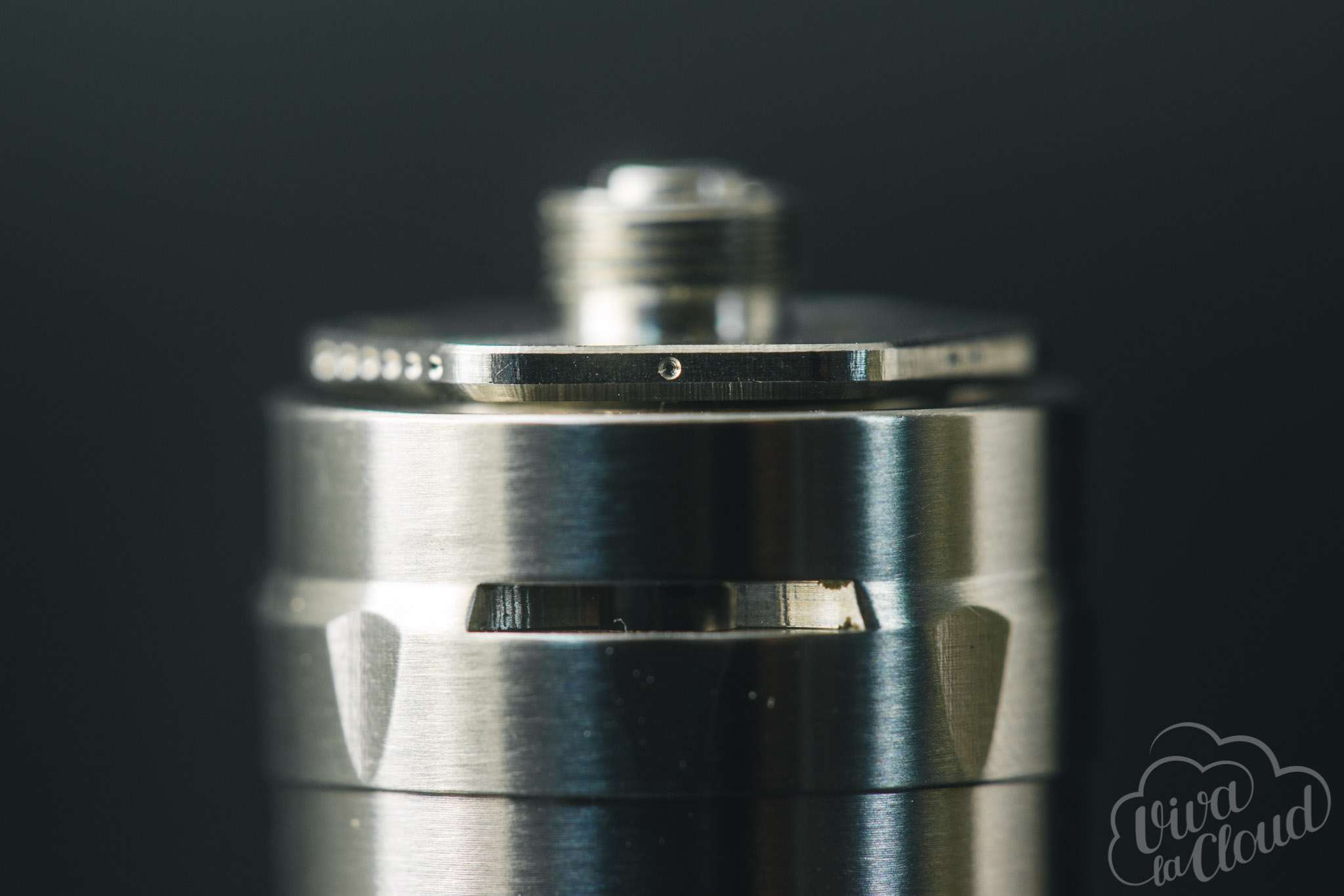 «Кайфун» Prime — традиционно для продукции SvoeMesto — собран из множества частей. Резервуар для жидкости состоит из основания с отверстиями подачи, стекла, проставки с отверстиями заправки и крышки со специальными спилами. Даже дриптип — и тот двусоставный, с гравировкой.
