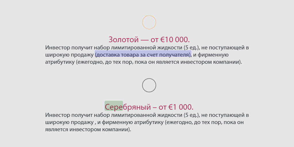 На сайте, специально созданном под ICO, до 13-го октября (уже починили) красовалась ошибка — ться/-тся. В white paper — специальном документе, рассказывающем об ICO — всё еще зияет логическая дыра. Написано: купи вейп-коинов на 1 000 евро — получи подарки; купи на 10 000 — тоже получи, но с «доставкой товара за счет получателя». Очевидно, должно быть наоборот. Relakes хотят, чтобы им доверили деньги — а сами пропускают ошибки в святая-святых.