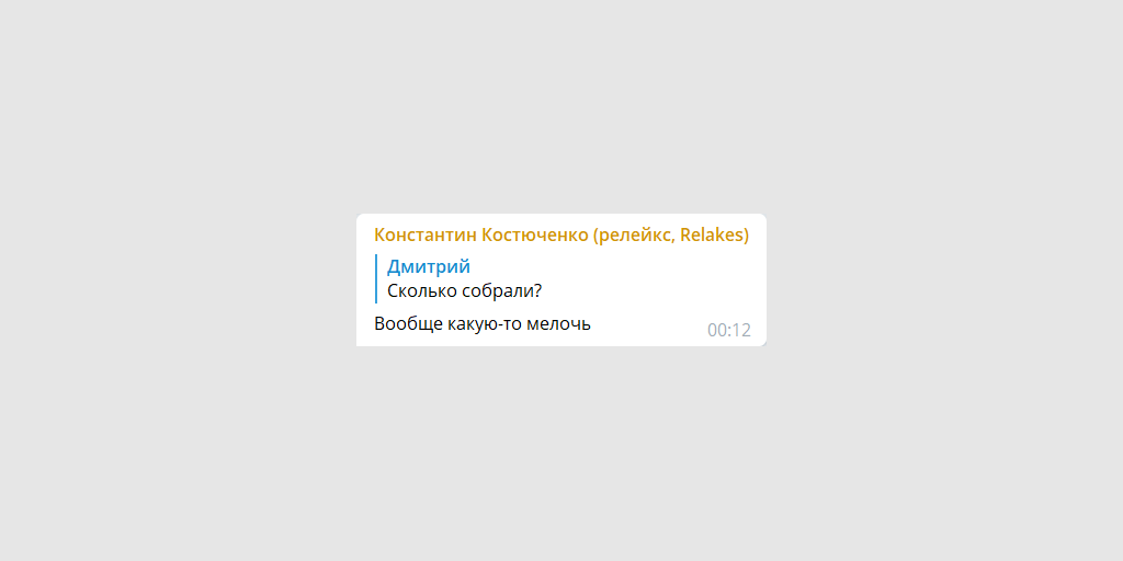 Первый раунд ICO начался в 12:00 13-го октября. Эта заметка была опубликована минимум 8 часов спустя. Как отметил Костюченко в профильном вейп-коин-чате в Телеграме, собрали они к этому времени «вообще какую-то мелочь». В диалоге с автором ViVA la Cloud он оказался конкретизировать числа, сославшись на то, что «Гугл» запретил им рекламировать вейп-коин (см. вопрос «Что с рекламой»).