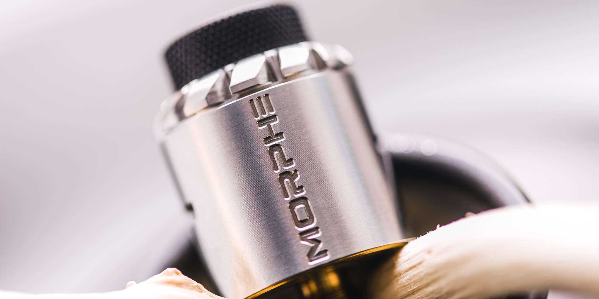 Дизайн Morphe RDA привлекателен и брутален. Изголовье минималистичной юбки со скромной гравировкой украшает массивный резной радиатор, напоминающий циркулярную пилу. На дриптипе есть накатка — он будет желанным экземпляром в коллекцию любителям 810 формата.