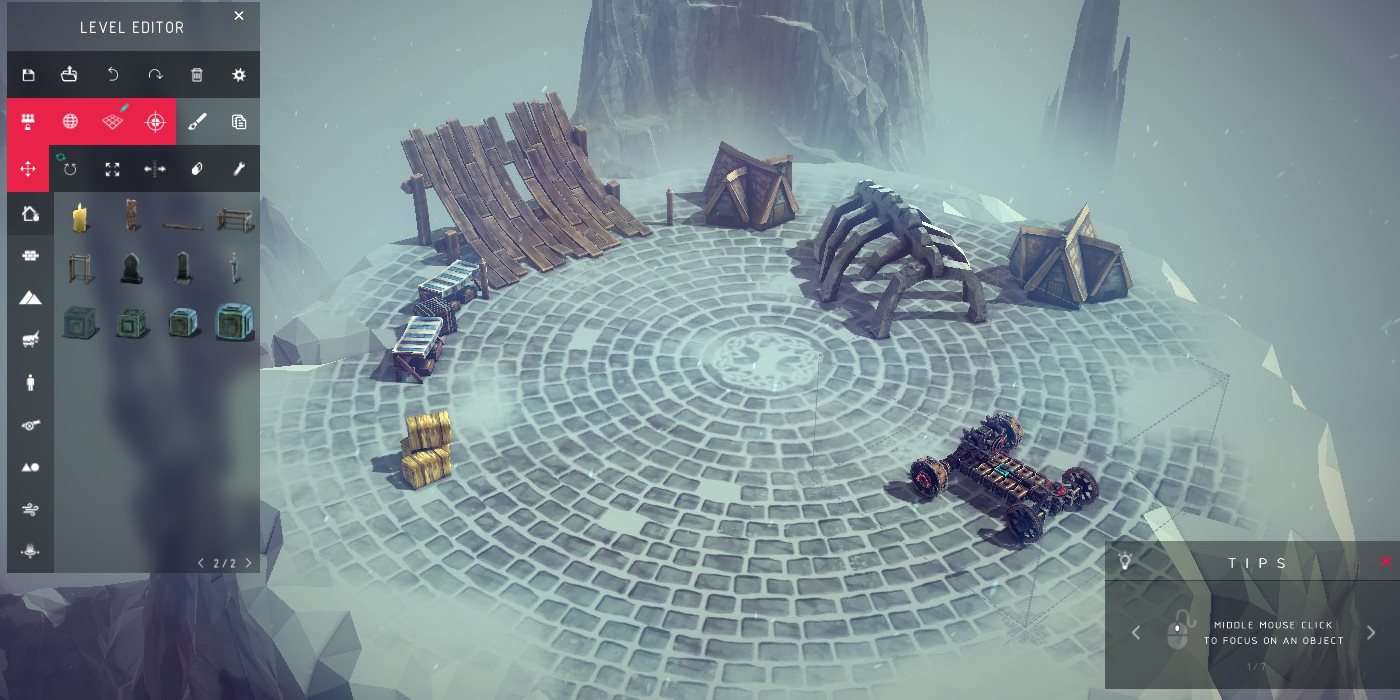 Помимо возможности собирать из готовых объектов уровни, редактор позволяет размещать на объектах и различных зонах триггеры. При помощи них можно создавать условия для победы на уровне — уничтожение замка, врага или загнанный в ворота мяч.