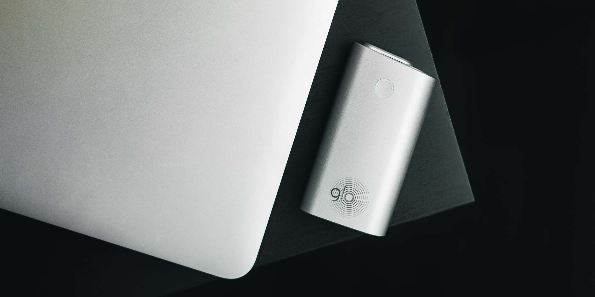 glo — практически квадратная коробка. На боку есть кнопка включения со светодиодом и логотип, снизу и сверху — отодвигающиеся крышки. USB-порт — тоже снизу. На этом элементы управления и декора заканчиваются — девайс выглядит как аккуратный кусок алюминия.