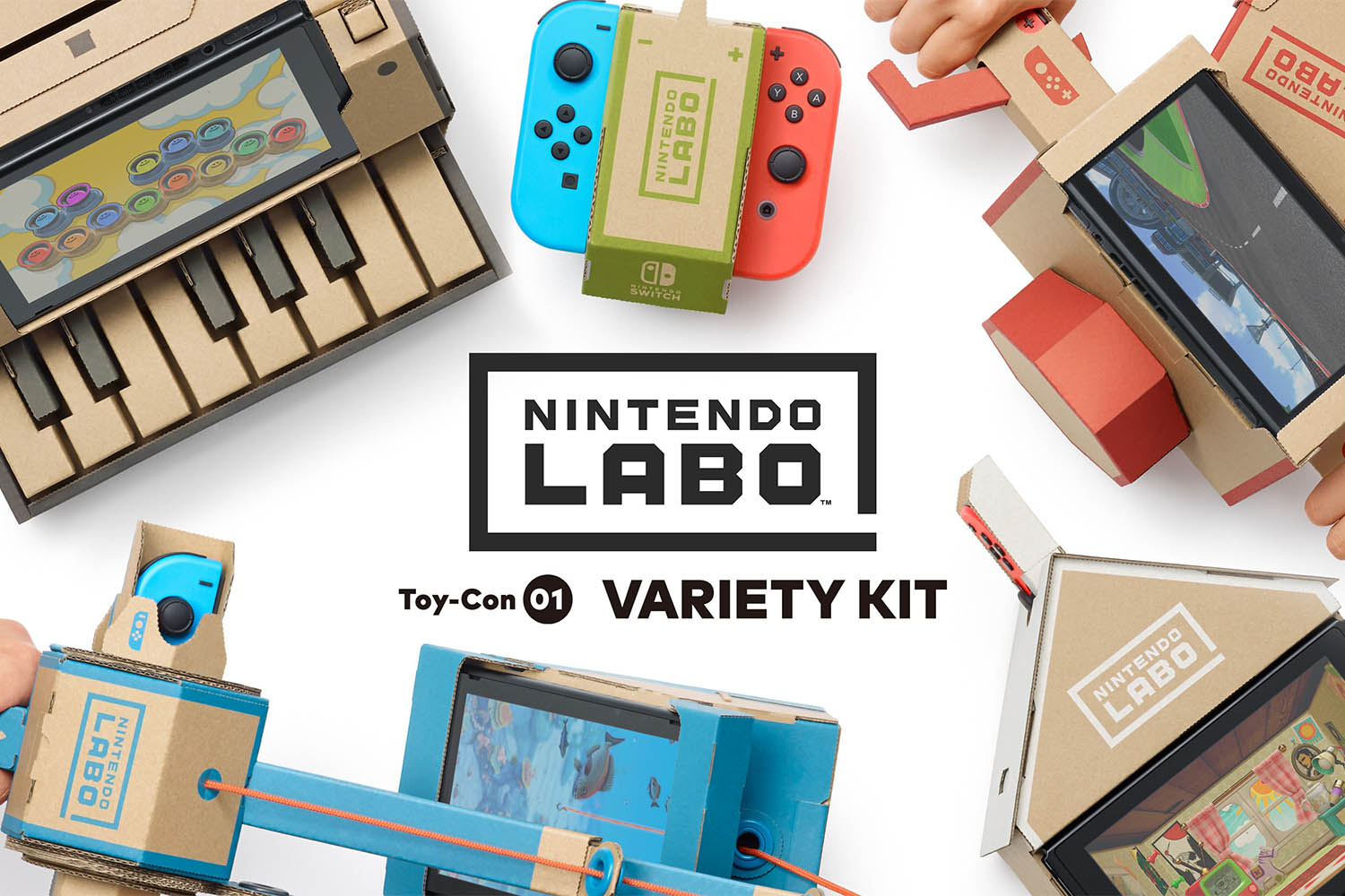 Nintendo представили два набора. Первый называется Nintendo Labo Variety Kit включает в себя 5 разных игр. Первая — две радиуправляемые машинки, больше похожие на насекомых. В сами машинки нужно установить джойстики от Switch, а управлять ими на сенсорном экране приставки. Вторая — удочка для рыбалки. Один джойстик с помощью акселерометра засекает, сколько выбрано лески, второй следит за положением удочки в пространстве. Сама игра показывается на установленном на специальной подставке Switch. Третья — дом. Помимо здания нужно собрать какие-то вставляющиеся сбоку кнопки, а сам Switch установить экраном к себе. Как конкретно в это играть, из видео не особо понятно. Четвертая — мотоцикл. Здесь нужно собрать эдакий руль, установив джойстики слева и справа — благодаря акселерометру они поймут, где поворачивать, а где ускоряться. Пятая — пианино. В коробку с клавиутарой следует установить и джойстики, и саму приставку — каким-то загадочным образом система проассоциирует фанерные клавиши с наэкранными и издаст все правильные звуки.