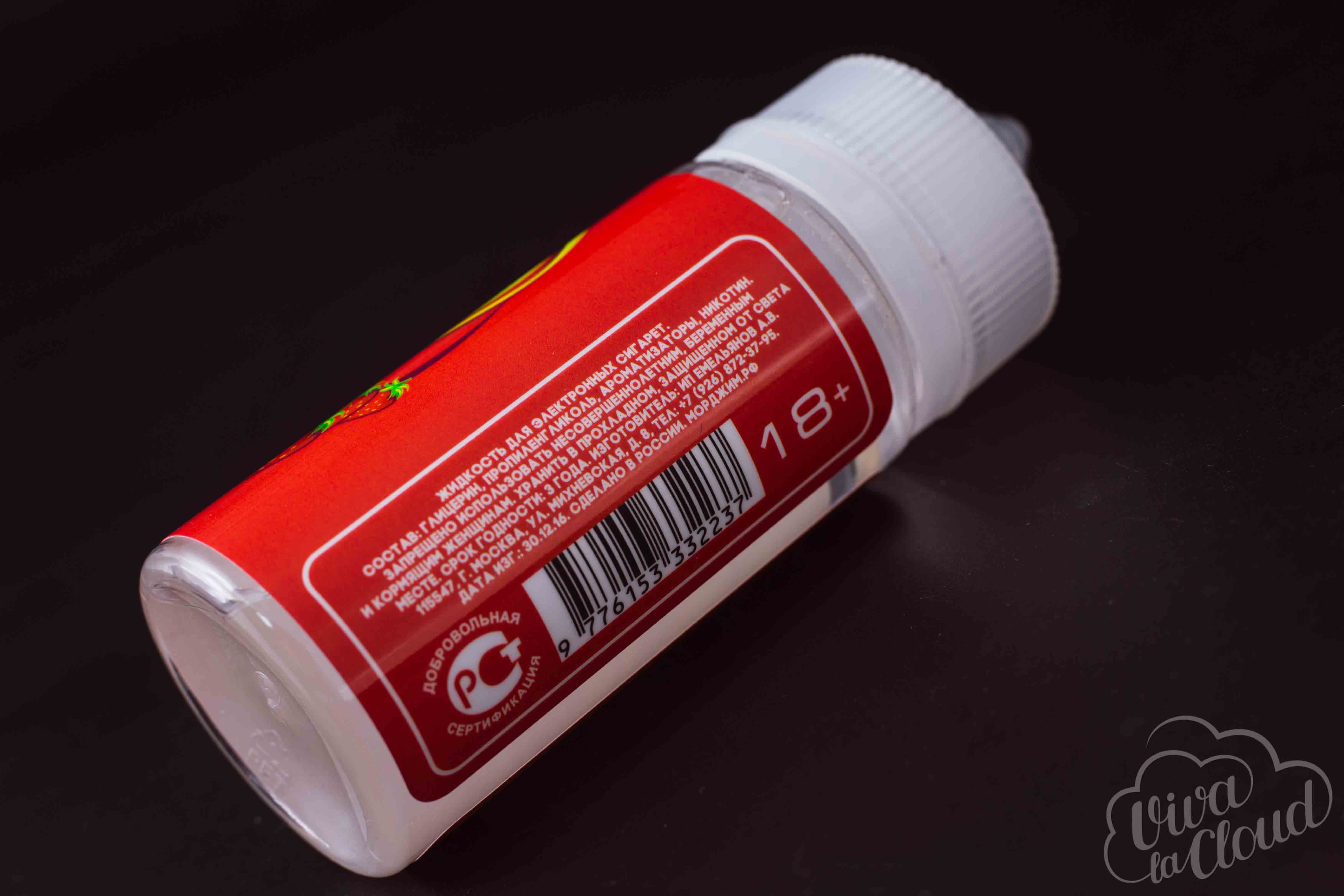 Жидкость приезжает в прозрачных флаконах объемом 100 миллилитров. Крышка имеет рабочую защиту от детей и контроль первого вскрытия. Цвет этикетки зависит от выбранного вкуса. На лицевой стороне — логотип линейки, название вкуса и характерное изображение с ключевым ингредиентом. Левее — тег производителя, а также указания на объем, баланс и крепость никотина.На противоположной стороне белым шрифтом пишутся состав, юридическая информация и срок годности. Там же находятся отметка «18+» и знак добровольной сертификации.