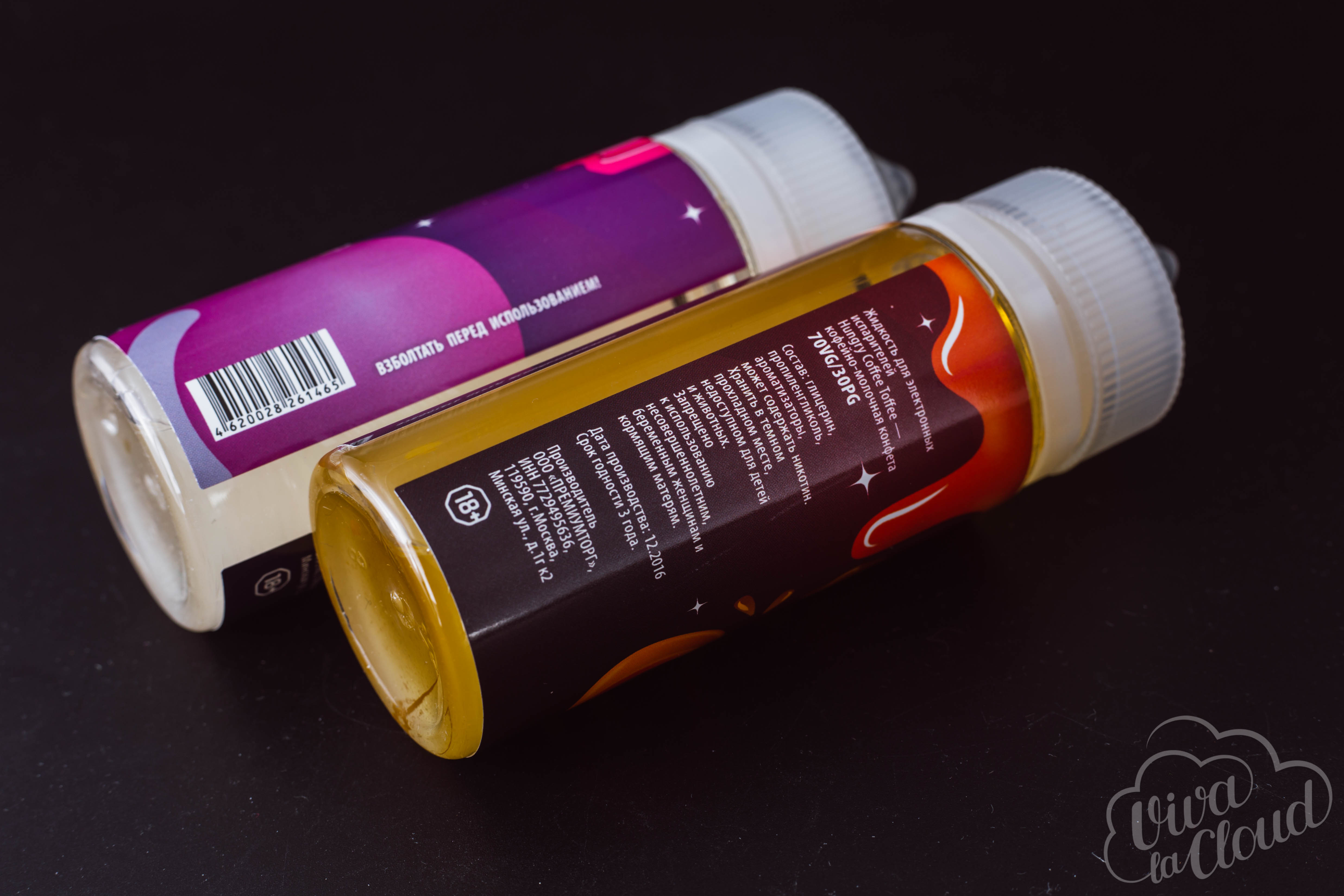 Жидкость приезжает в прозрачных «чаббиках» объемом 120 миллилитров. Крышка имеет защиту от детей и контроль первого вскрытия. На бутылке — глянцевая этикетка. Фоновое изображение и цветовая гамма зависят от выбранного микса. На лицевой стороне — названия линейки и вкуса, а также указания на крепость никотина и объем флакона. Вся необходимая информация находится левее. Там пишутся состав, описание микса, предупреждения, срок годности и юридические данные.