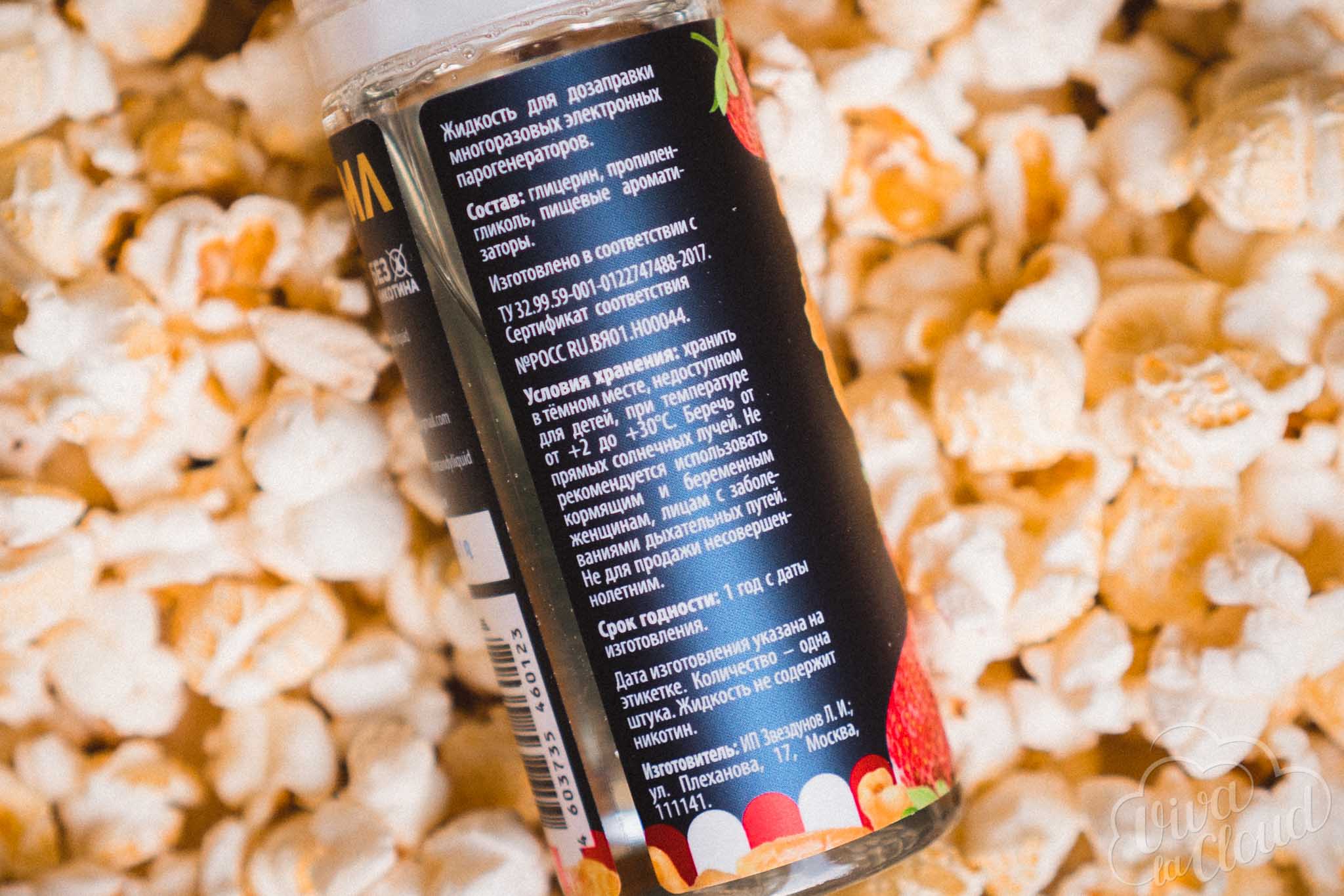 - Алексей: Тот же попкорн, но вместо жвачки — клубничный джем. Должен признать, что данный микс значительно интереснее предыдущего. Это похоже на правду и более чем подходит для ежедневного парения.