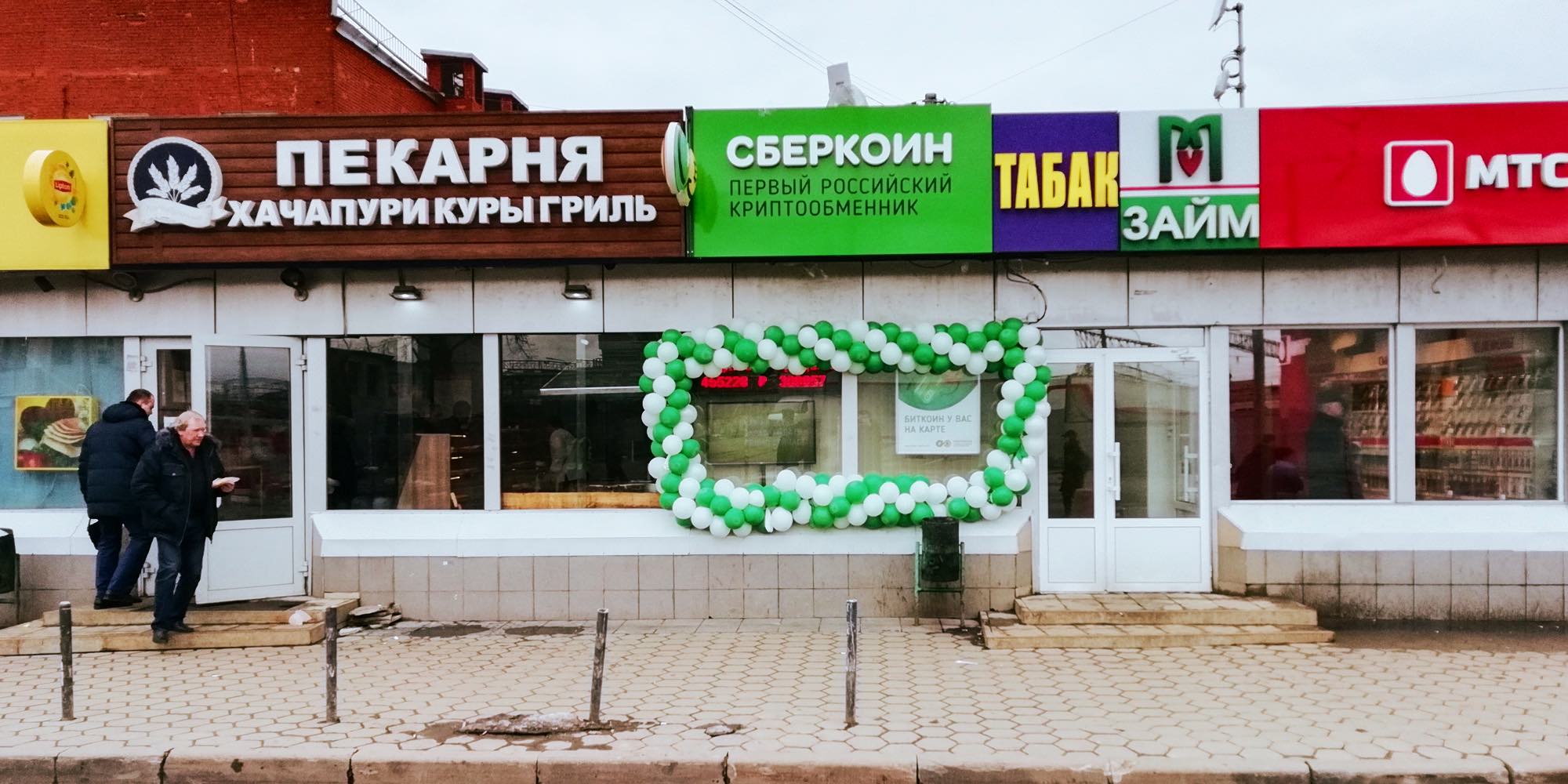 Вывеска «Сберкоина» висит между «Курами-гриль» и «Табаком». Внутри соседство то же — сигареты помещены в нескольких метрах от криптообменника. В «Сберкоин» зазывают с улицы — там стоит девушка в жилетке и с флаерами. Благодаря такому «промо», говорит ViVA la Cloud один из менеджеров в плохо завязанном зелёном галстуке, все и узнали об обменнике — хотя открылся он «несколько недель назад».