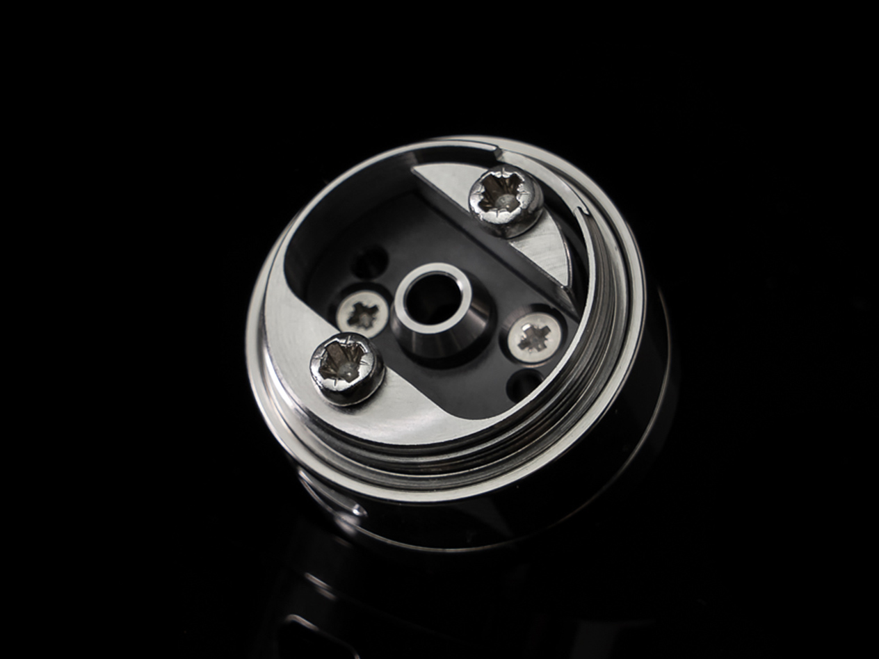 Купол плотно фиксируется на базе посредством резьбы. Под ним располагается съёмный модуль с изолятором и стойкой, в центре возвышается воздушный канал. Роль второй стойки для установки спирали выполняет утолщённая стенка деки. Ножки располагаются горизонтально и прижимаются сверху винтами под крестовую отвёртку. Воздушное отверстие можно дополнить вставкой обеспечивающей тугую затяжку. Предустановлен сквонк-пин, жидкость подаётся снизу через два слота.